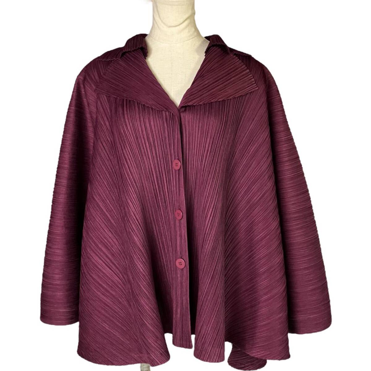 | イッセイミヤケ レディース PLEATS PLEASEプリーツプリーズ PP71-JO401 ポンチョ ジャケットサイズ3 ワインレッド系 |
