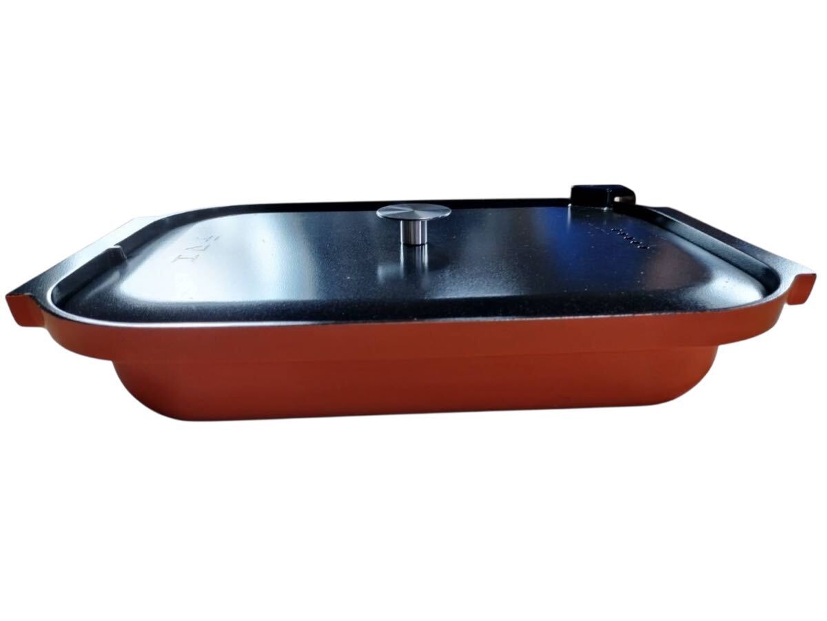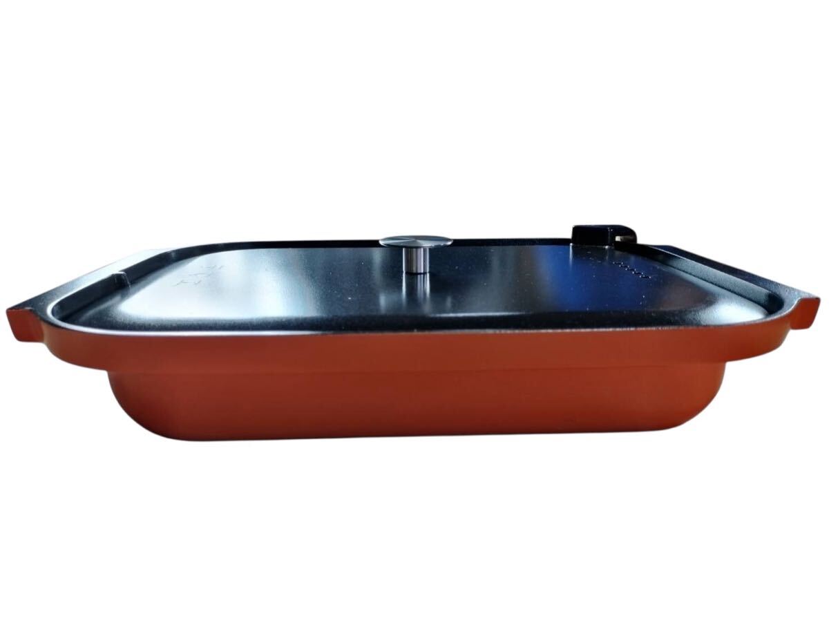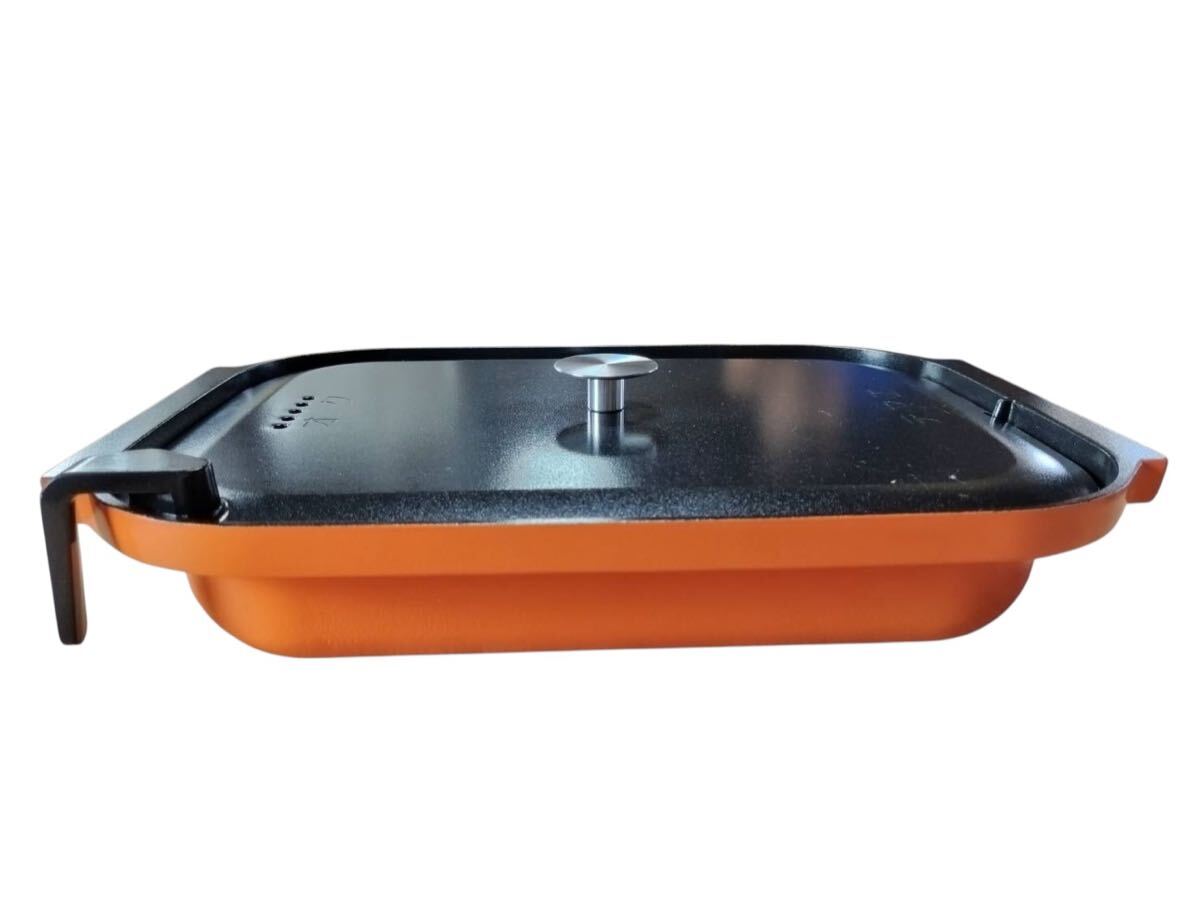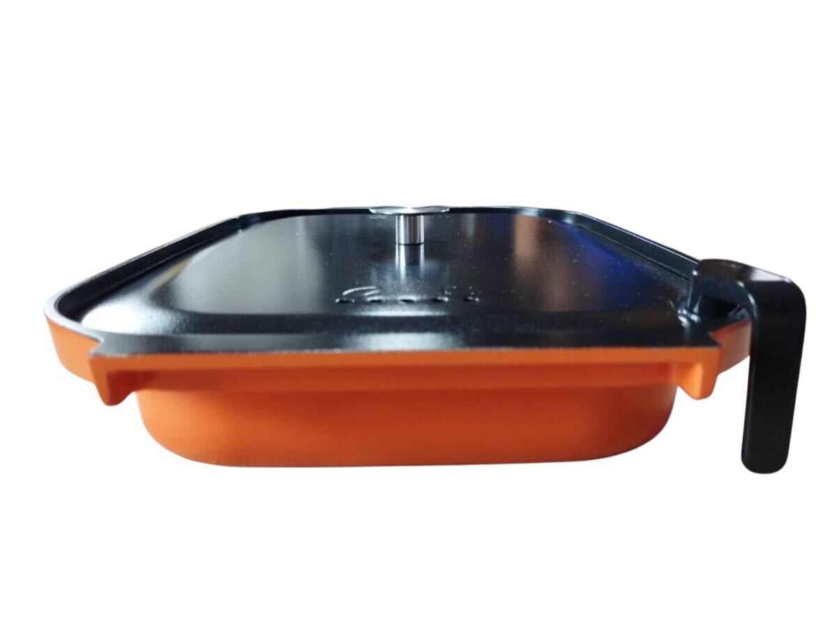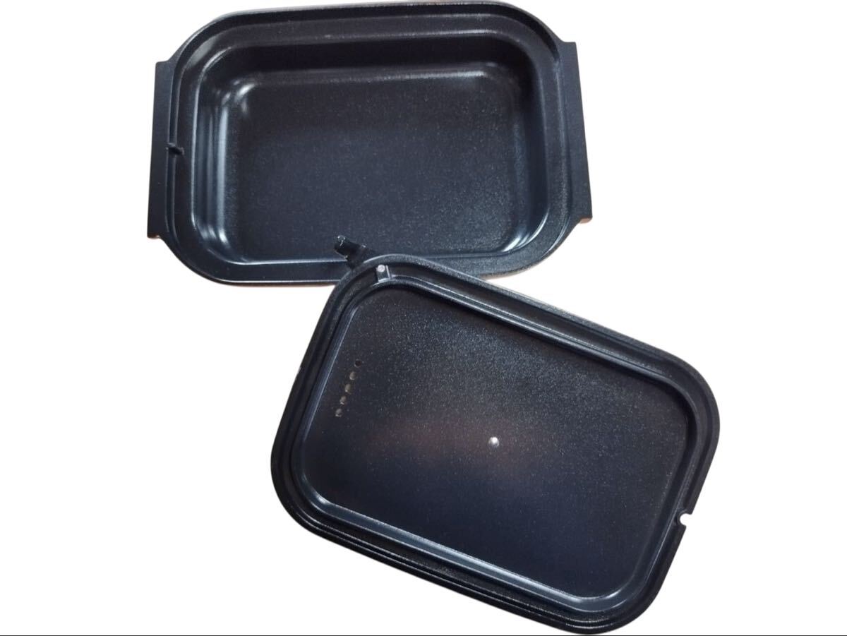 【N1129】角型 グリル鍋 ホットプレート用 なべ 部品 交換用ふた付き 調理家電 キッチン用品 中古品 ブラック オレンジ