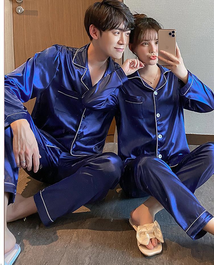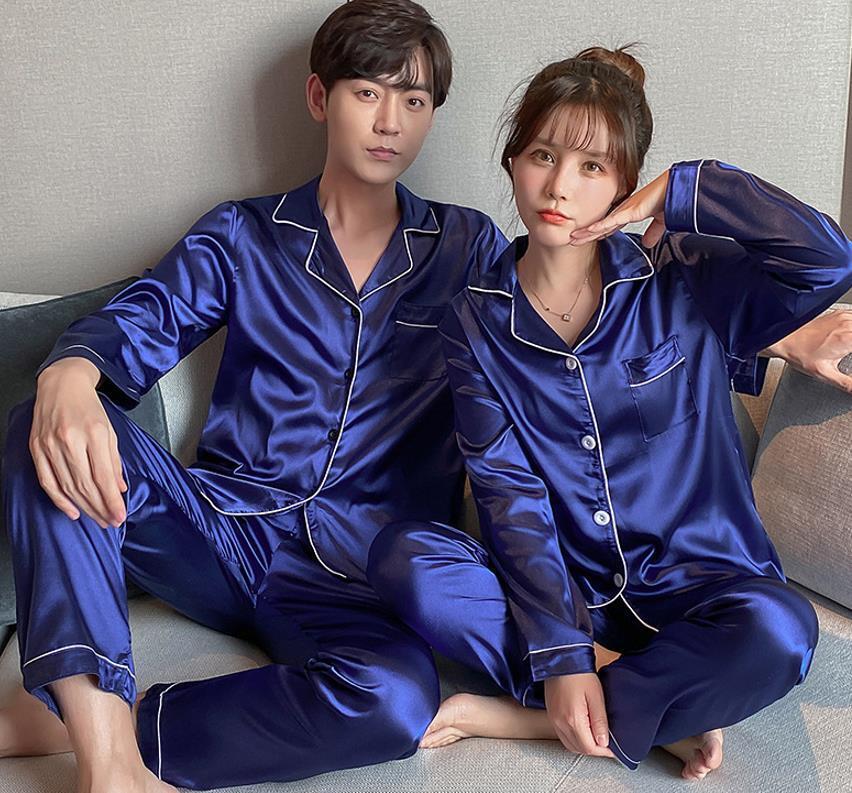 送料無料 匿名 パジャマ ペア ペアルック 長袖パジャマ ペアパジャマ レディース メンズ ルームウェア シルク風