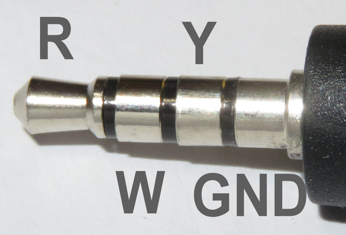 4極の3.5mmピンプラグから映像、ステレオ音声出力のRCAケーブルです。