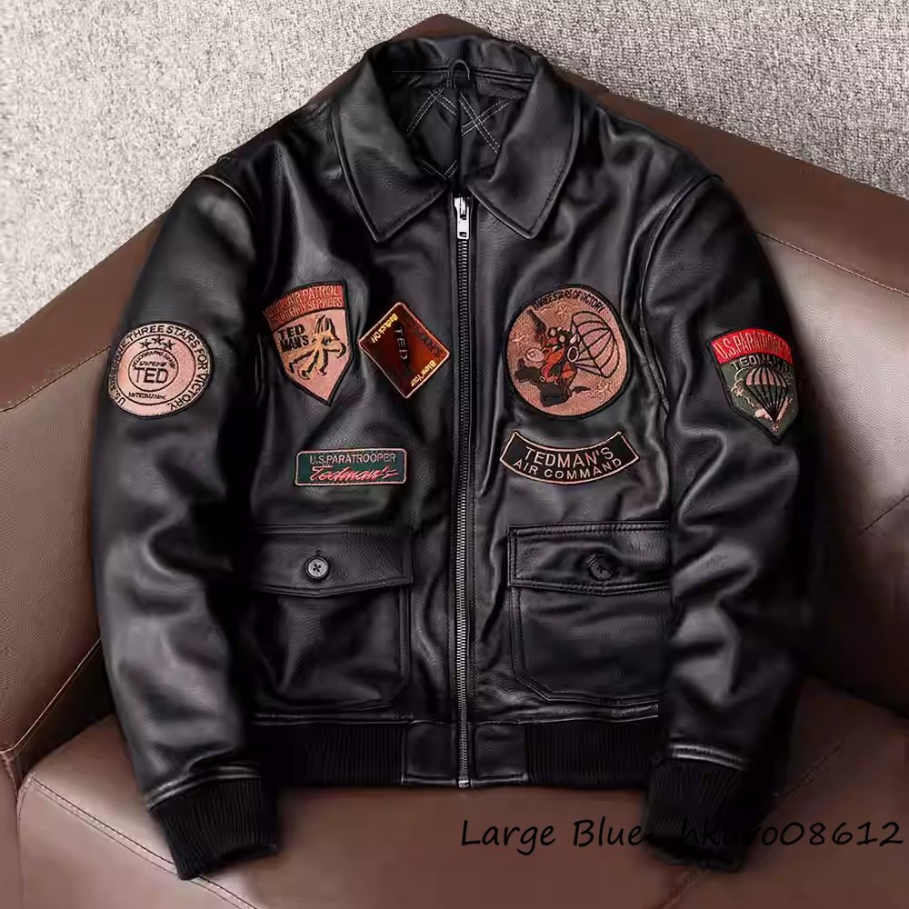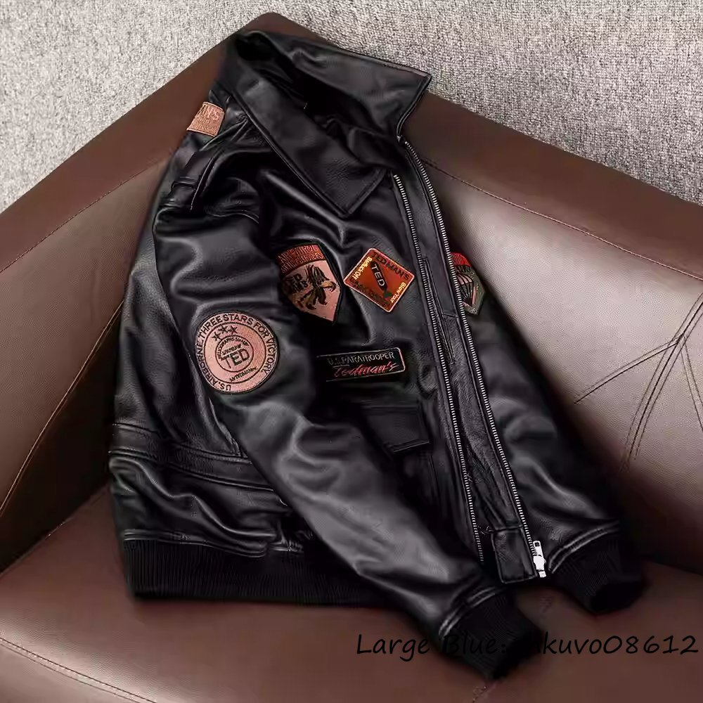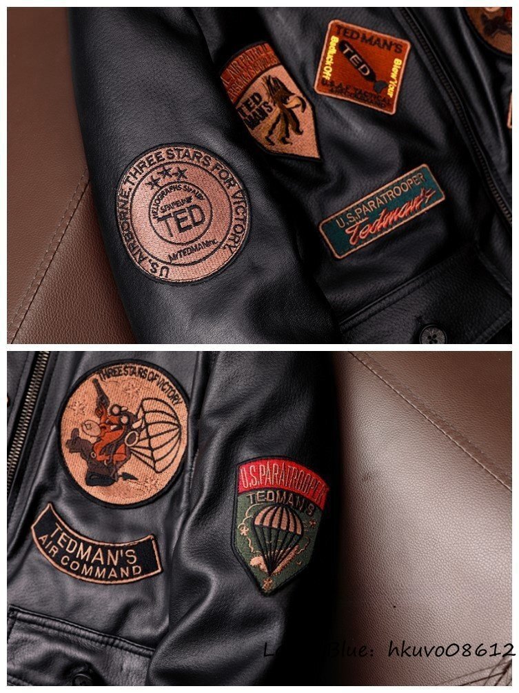 15万■最上級 ナッパ革 ma-1 フライトジャケット ワッペン 刺繍 本革 レザージャケット ライダースジャケット ブルゾン バイクウェア 3XL