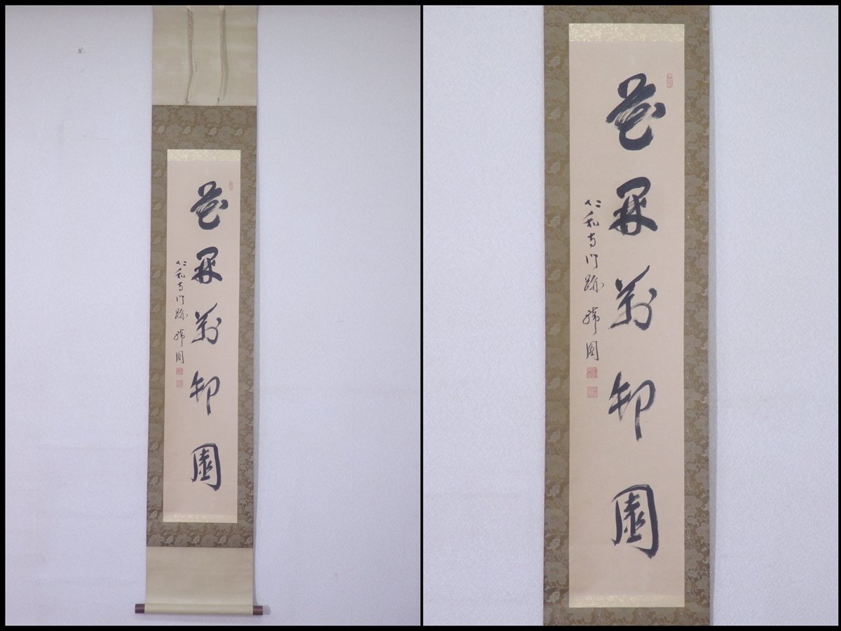 ★仁和寺門跡 森諦圓 肉筆【掛軸『一行書』共箱】紙本 幅31.8×全長182cm 茶道具 茶掛け 花開萬・・・