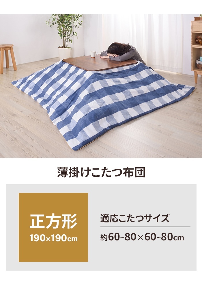 薄掛けコタツ布団 正方形 幅190 奥行190cm インテリア こたつ こたつ布団 |