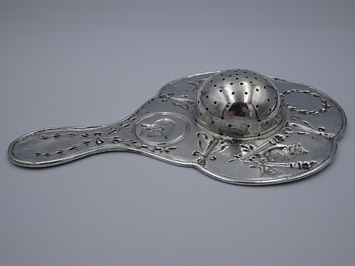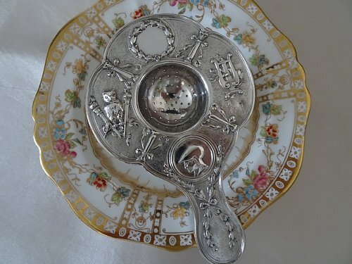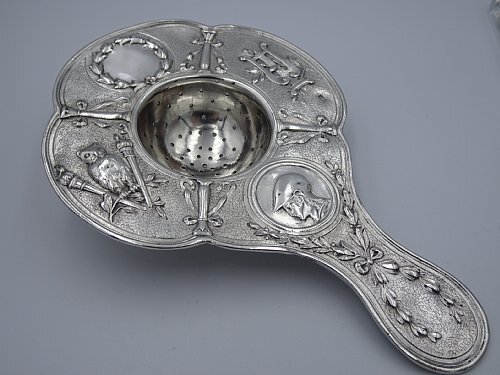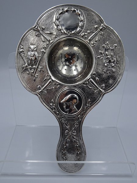 復古主義的装飾様式の800銀のティーストレーナー(茶漉し)です。