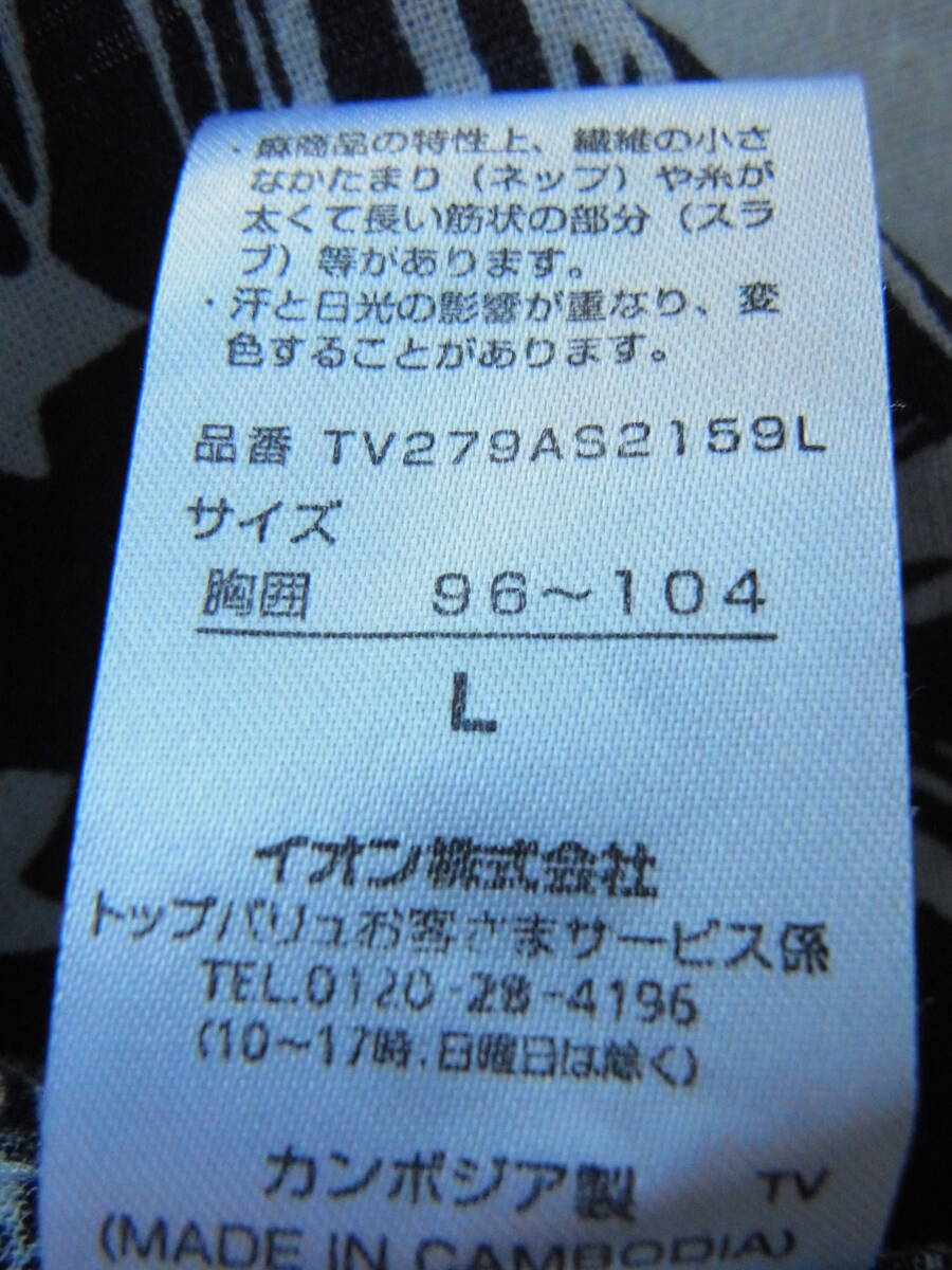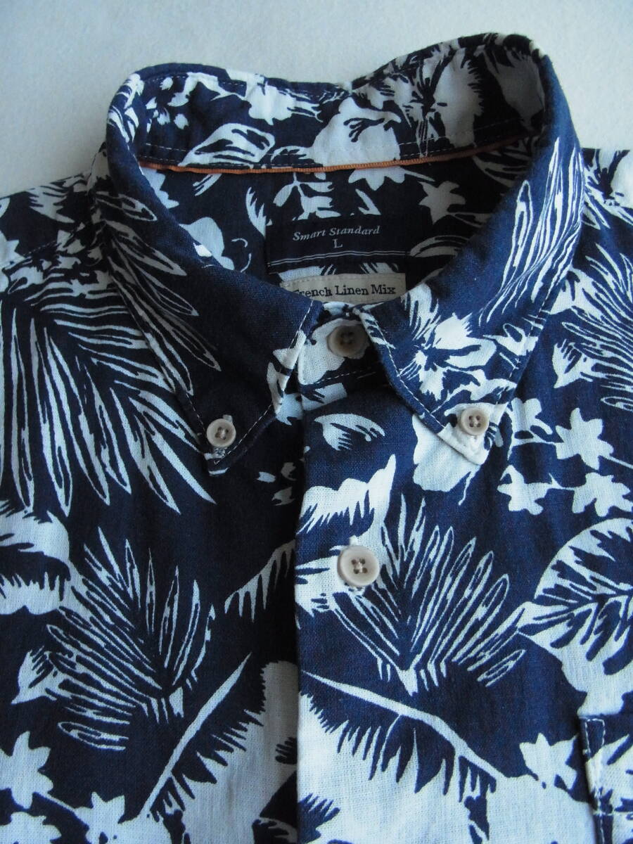 TOPVALU トップバリュ 綿麻素材 ハワイアンプリント ボタンダウンシャツ サイズ L