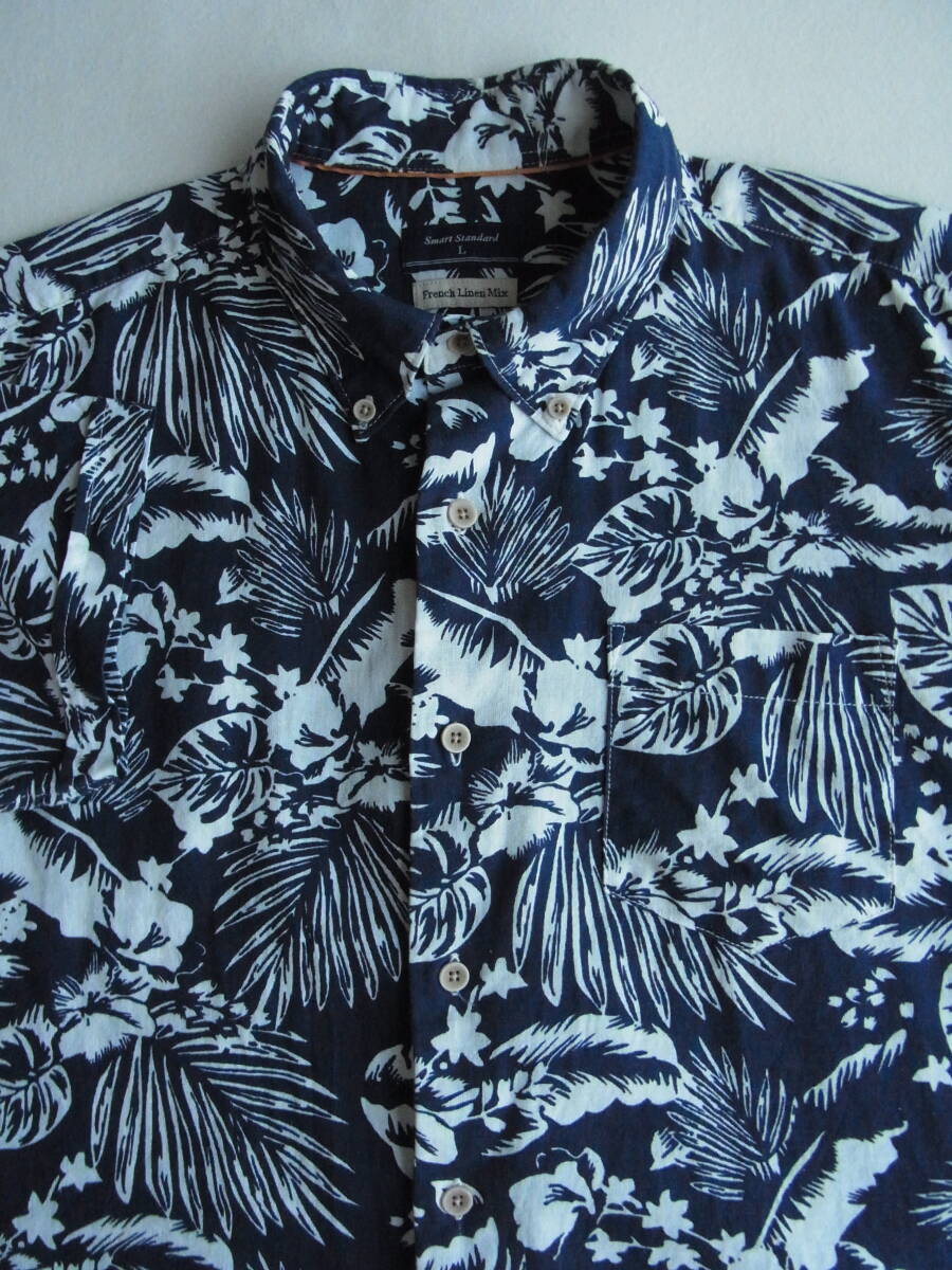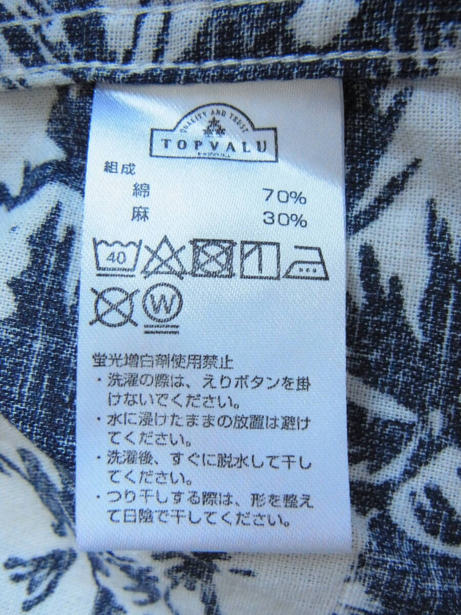 トップバリュの綿麻素材でハワイアンプリントのボタンダウンシャツになります。USEDで着用感は御座いますが、特に目立ったダメージ等は御座いません。