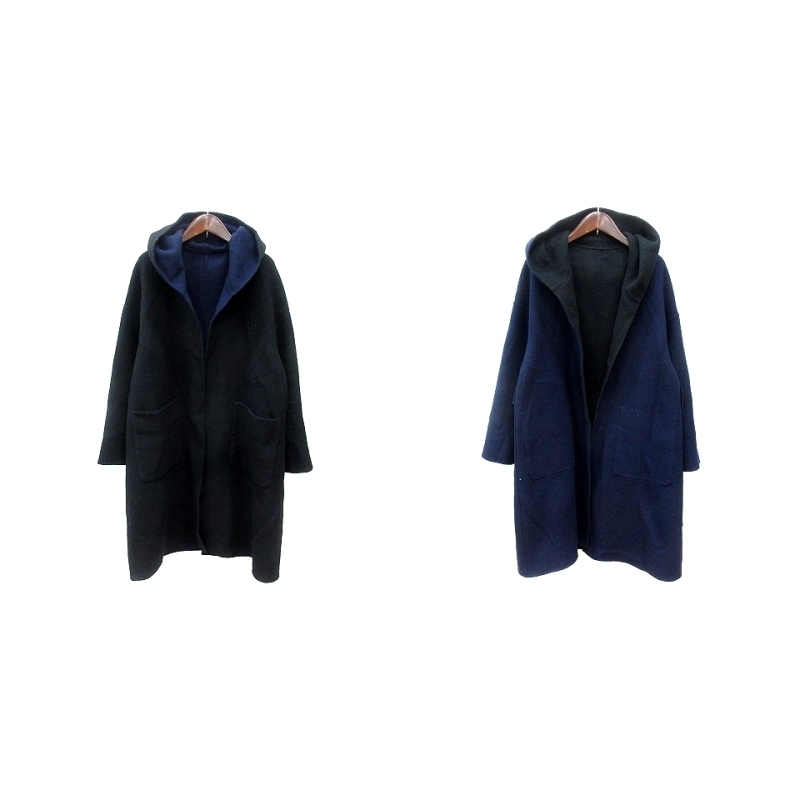ラグナムーン LagunaMoon ガウンコート リバーシブル ウール S 黒 ブラック 紺 ネイビー /MN レディース