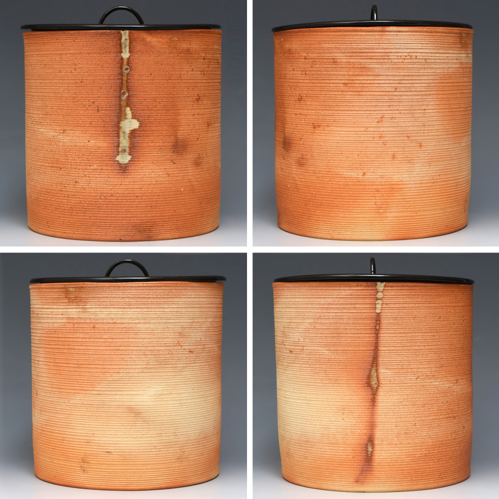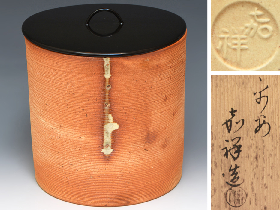 森岡嘉祥 (造) 火襷水指 塗蓋付 共箱 茶道具 現代工芸 京焼 陶磁器 漆工芸 |