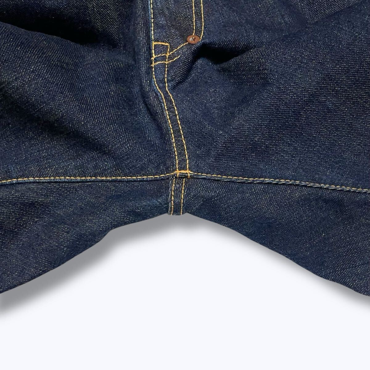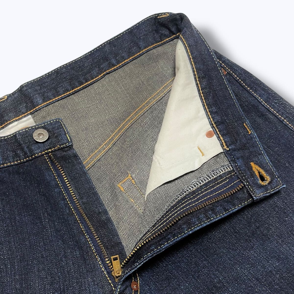 綺麗な縦落ちが魅力のセルビッチデニム(赤耳)を採用し、ディテールにはドーナツボタンを配するなど、