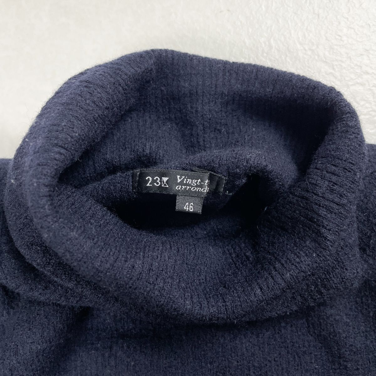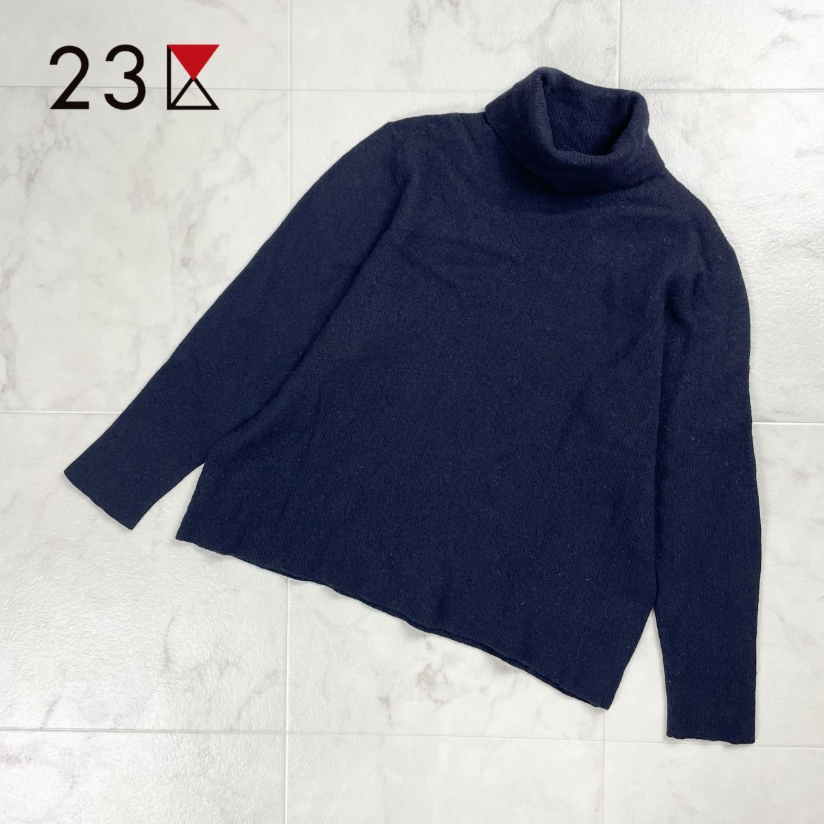 23区 オンワード樫山 ウール100% タートルネックニット セーター トップス レディース ネイビー 紺 サイズ46*FD795