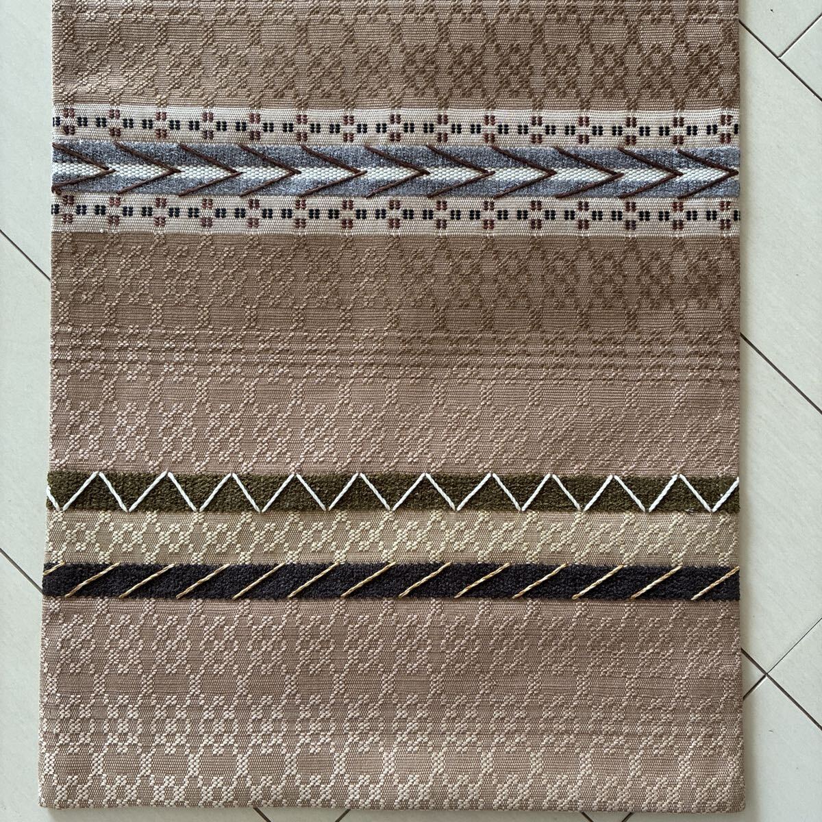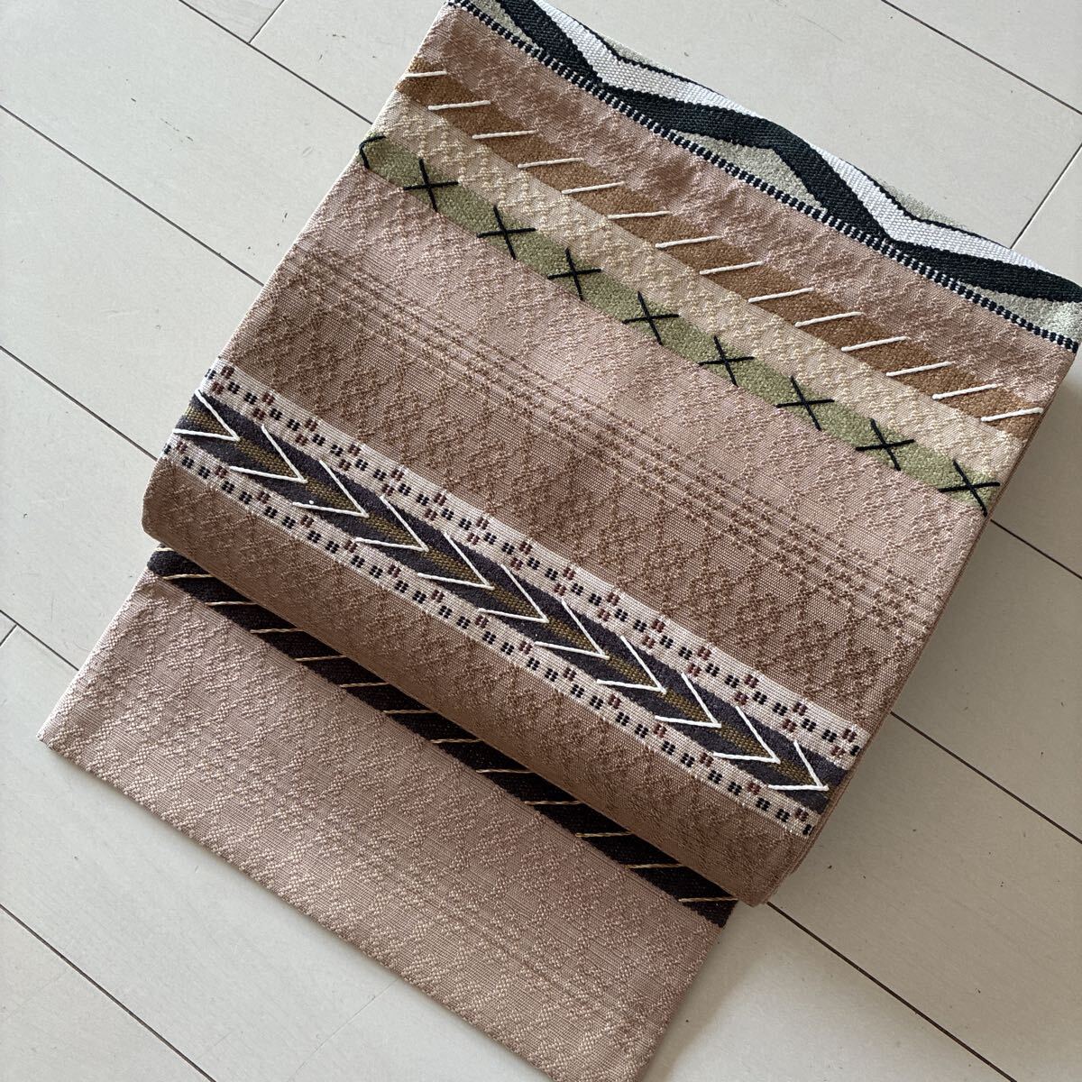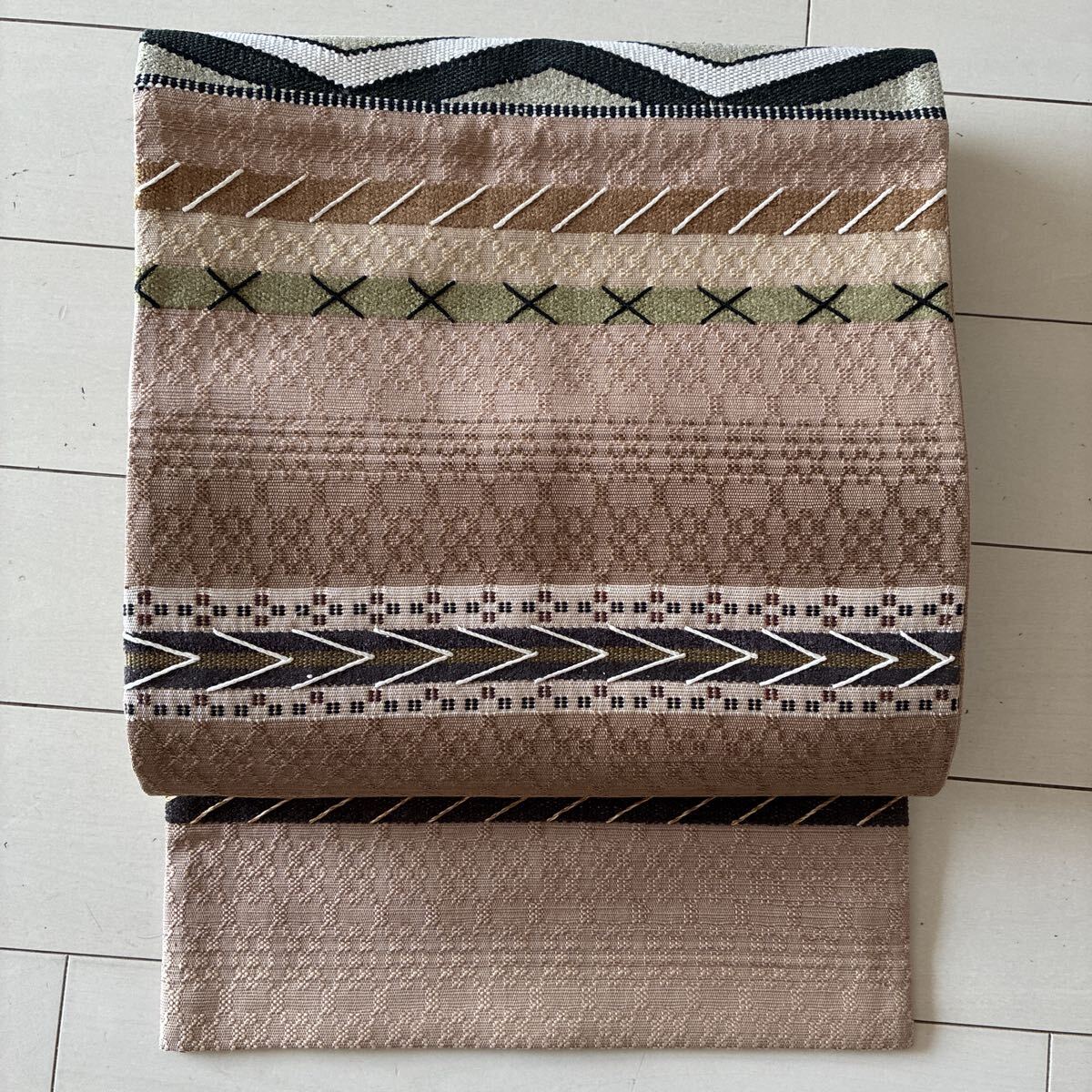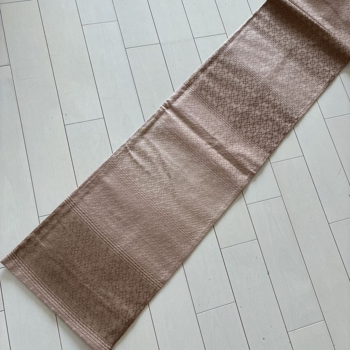【亜麻色 グラデーション 花織風 袋帯】