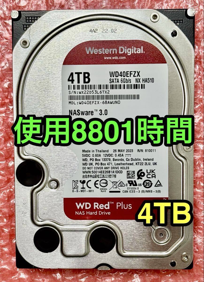 【送料無料★使用 8801 時間★4TB】WD40EFZX★WesternDigital WD Red Plus/SATA/2023年5月製