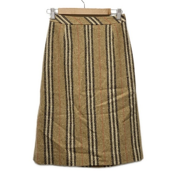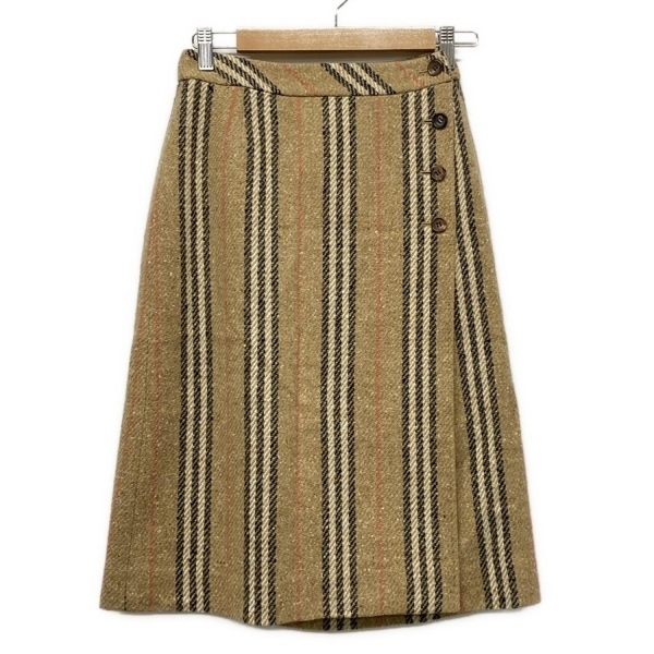 バーバリーロンドン Burberry LONDON 巻きスカート サイズ38 L - ライトブラウン×黒×マルチ レディース ロング/ストライプ 美品 ボトムス