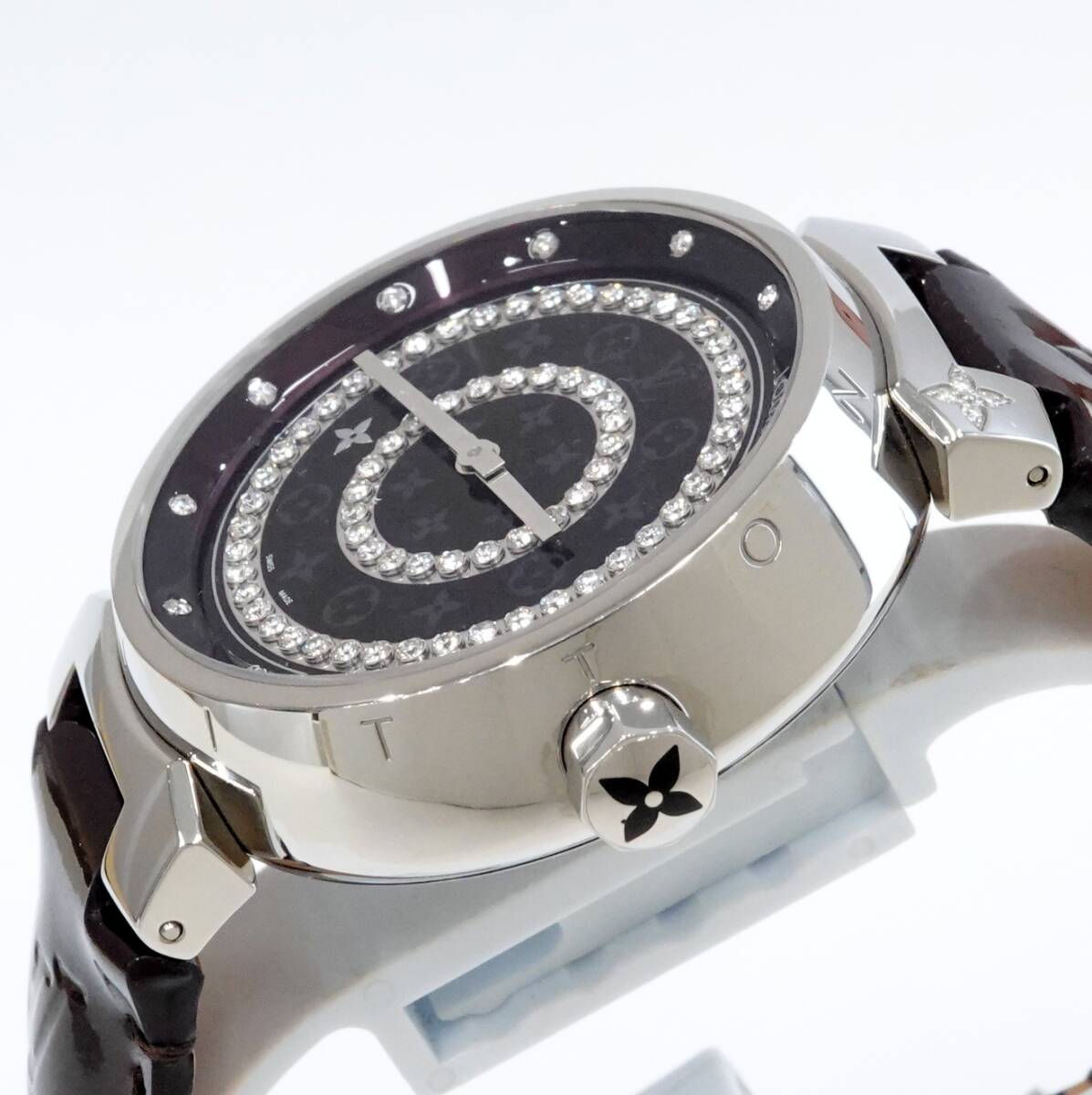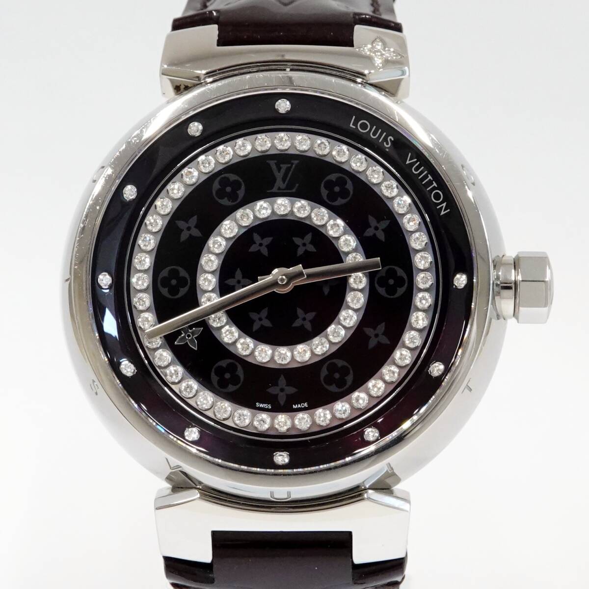 LOUIS VUITTON ルイヴィトン タンブール ディアモン GM Q111C ダイヤモンド メンズ クオーツ SS/レザー