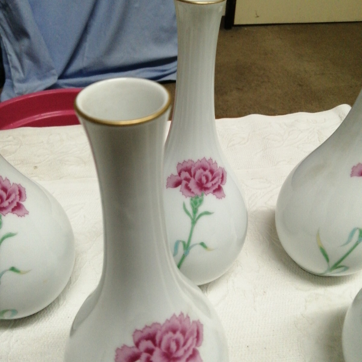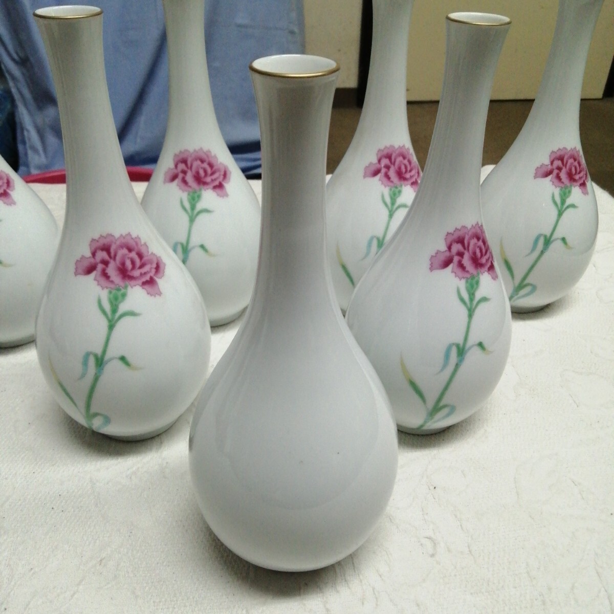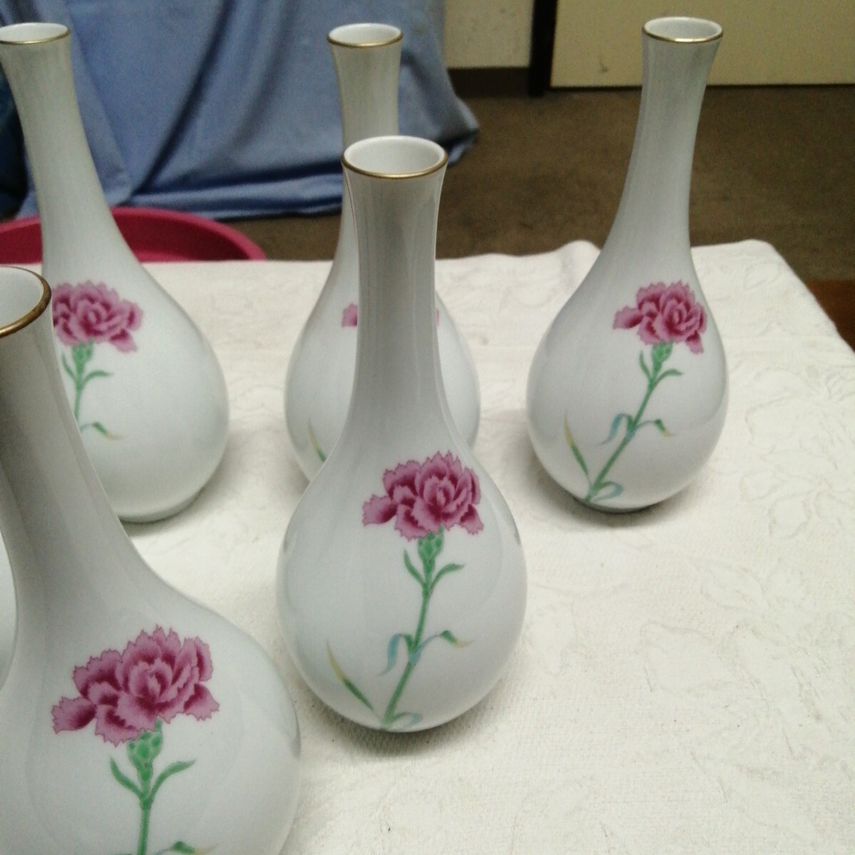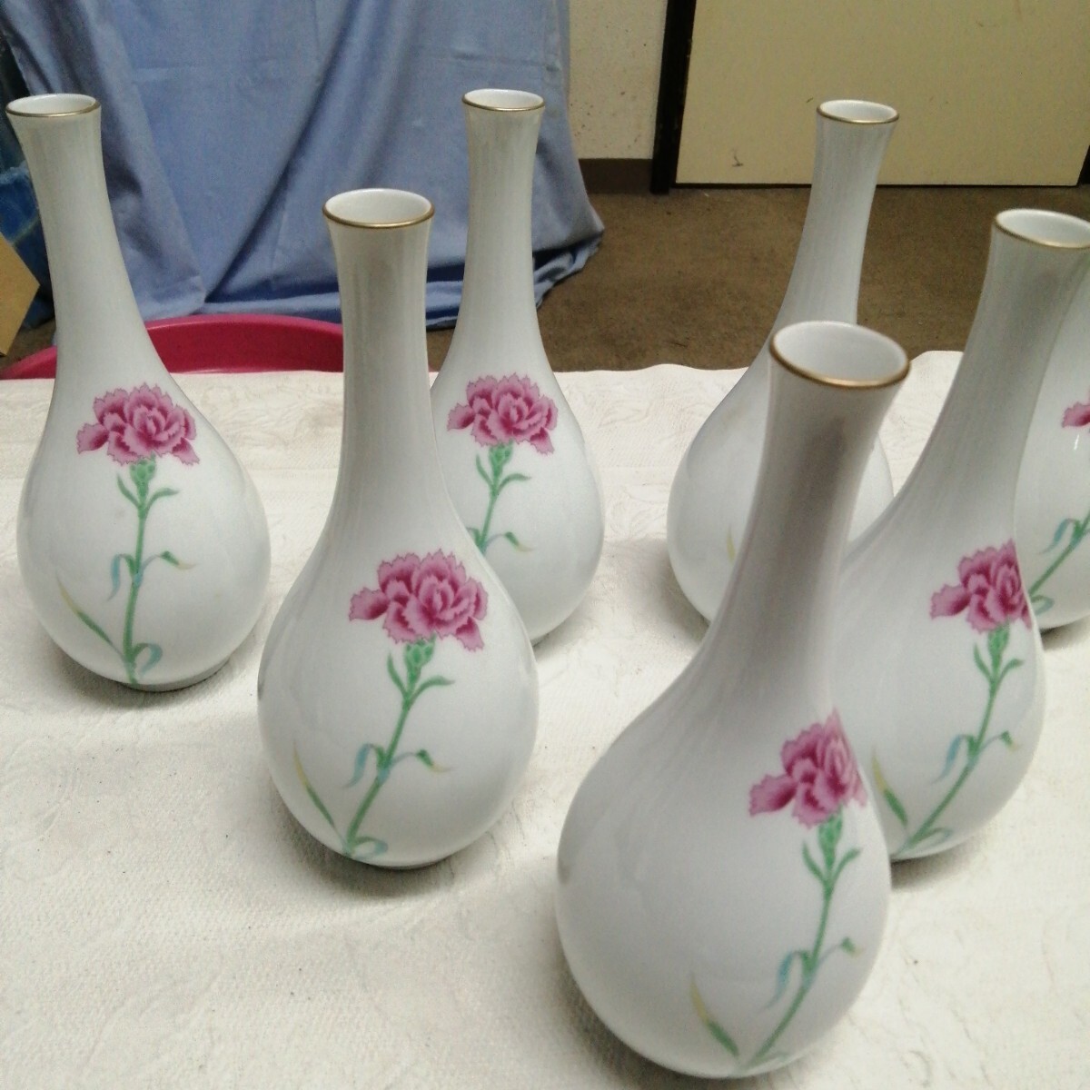 計7個 有田焼 深川製磁 一輪挿し 花器 花入 花瓶 花生 薔薇 金縁