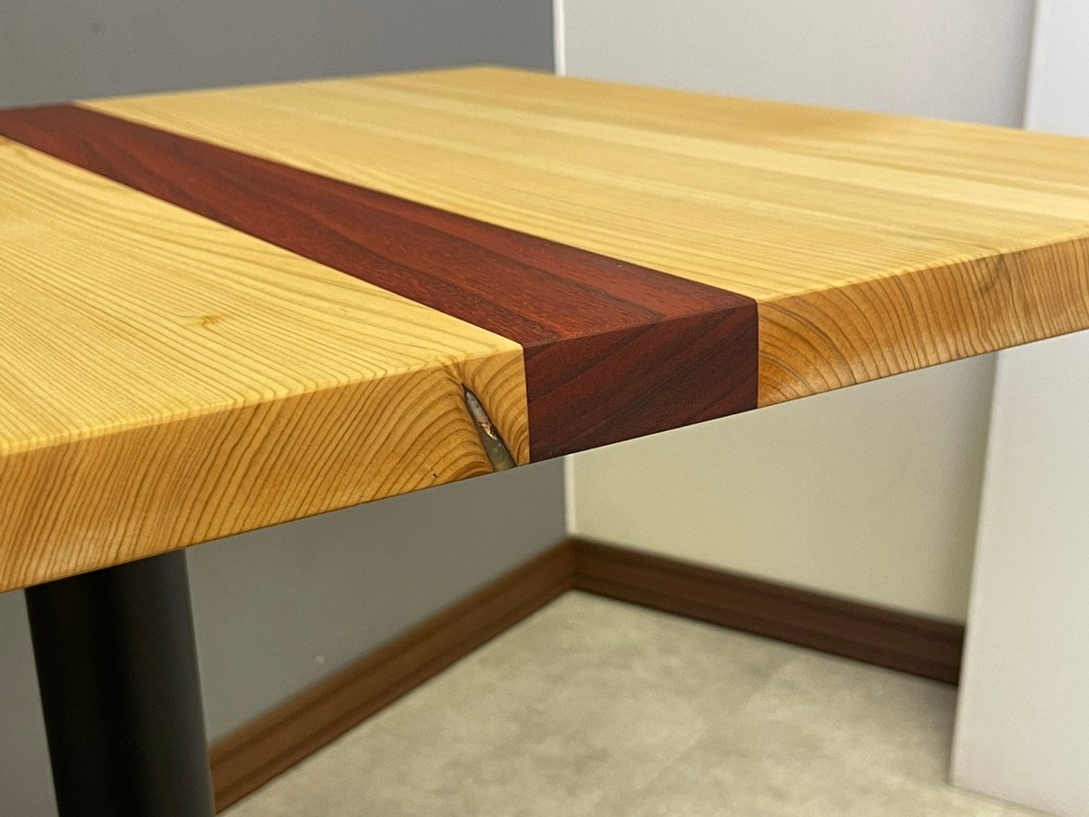 天然木 (オイル仕上げ) ・東濃ひのき (接ぎ板無垢材) ・パドック (赤いアクセント部) |