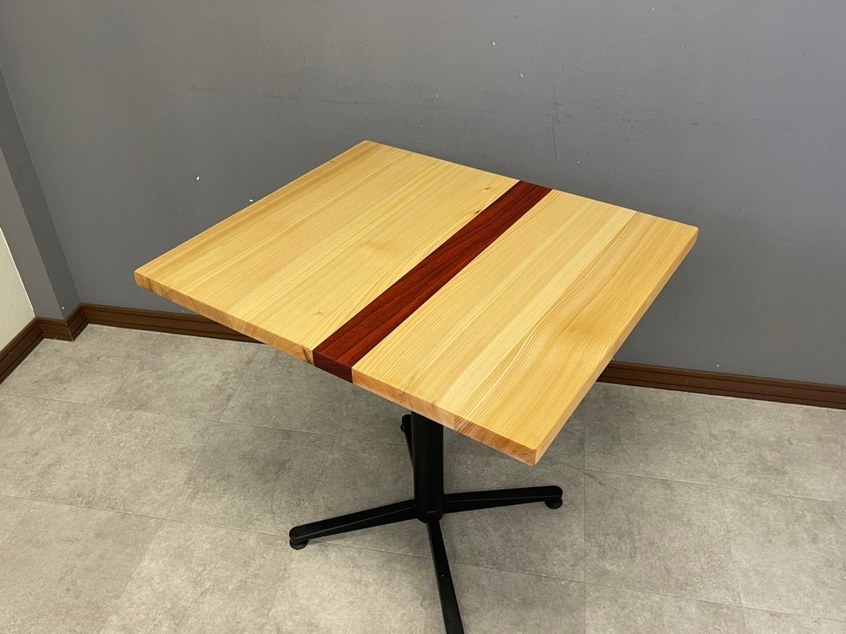 【無垢】240916006 大垣WOOD 業務用 カフェテーブル 600×700×H705 十字脚 無垢天板 ヒノキ ダイニングテーブル 2人掛け 日本製 天然木天板 中古 |
