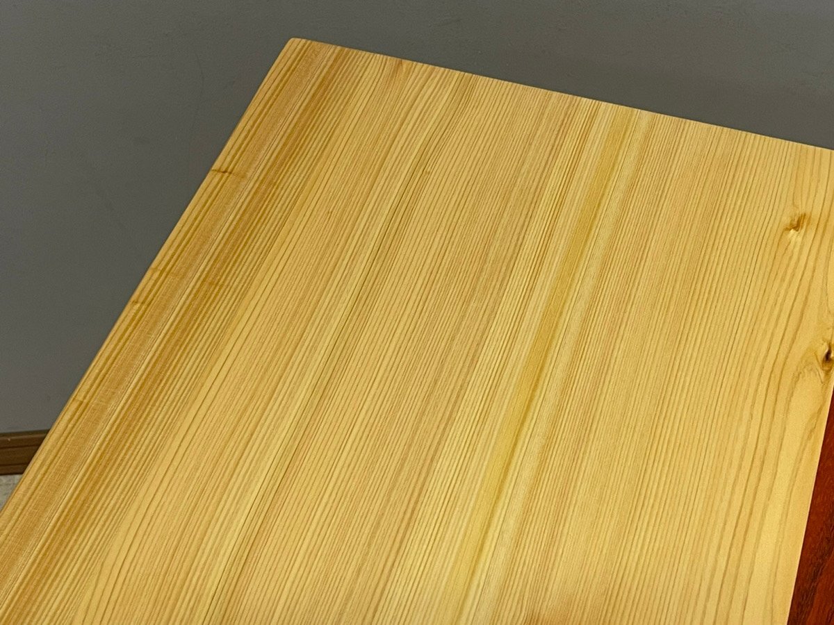 ※岐阜県大垣市内の工房で1点1点、手作りされた無垢天板です。 最高級の東濃桧に赤いパドック材をアクセントで組み合わせたおしゃれな机です。 ※新品の十字ベース脚と一緒にお届けします。 ※画像では分からないキズ、凹み、などある場合があります。 |