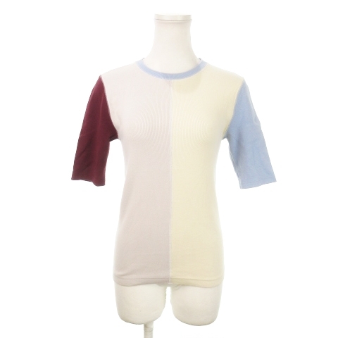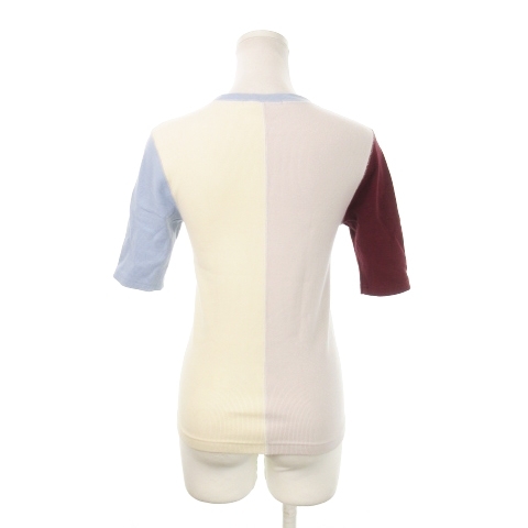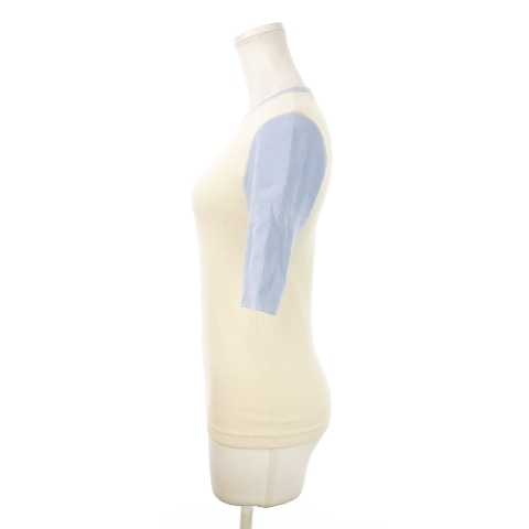 ファーファー furfur ニットソー リブ ラウンドネック 五分袖 切替 アウトステッチ F 白 ホワイト /MN5 レディース
