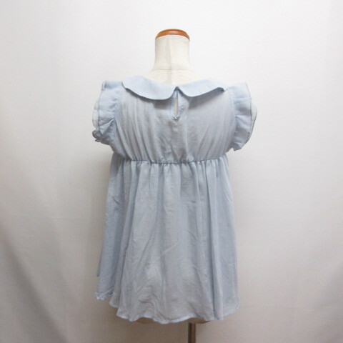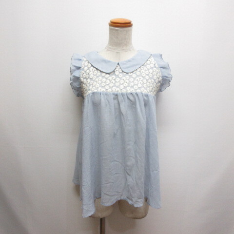 オリーブデオリーブ OLIVE des OLIVE 美品 ノースリーブ シアー フレア ブラウス ブルー レース装飾 カットソー レディース