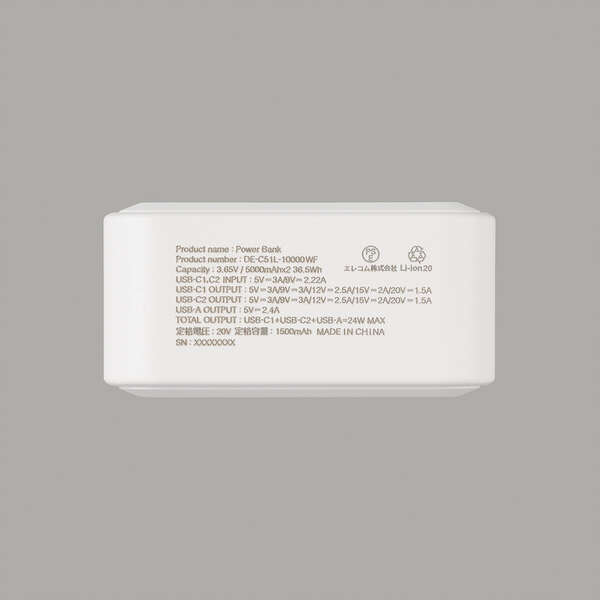 | 製品 | USB Power Delivery 30W対応 残量が見える高出力モバイルバッテリー |