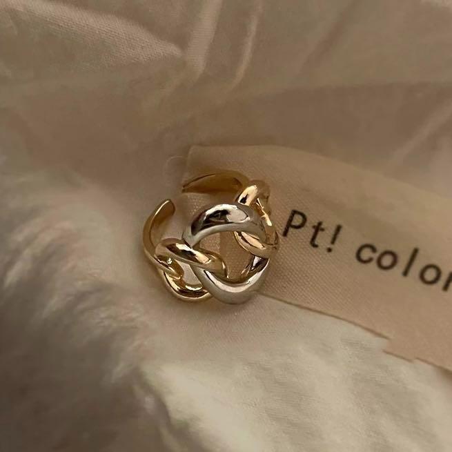 1つで手元にしっかりと存在感を放つゴールド・シルバーのツートンカラータイプリングです^ ^