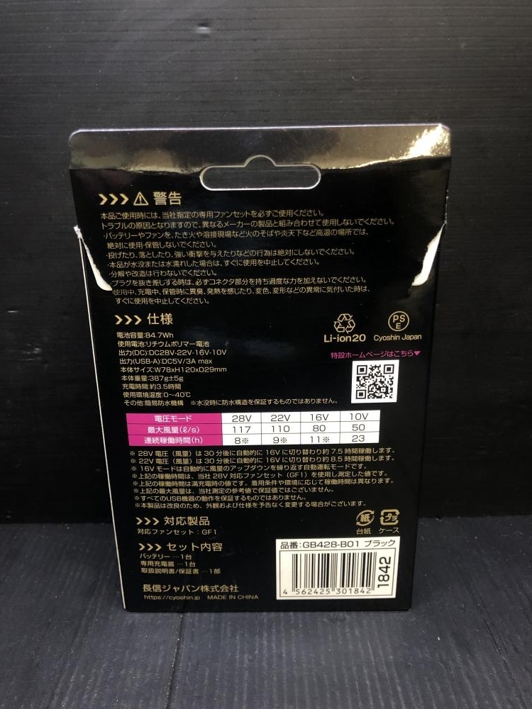長信ジャパン ■商品名 28V空調服用バッテリ※使用数回美品 ■型番 GB428 |