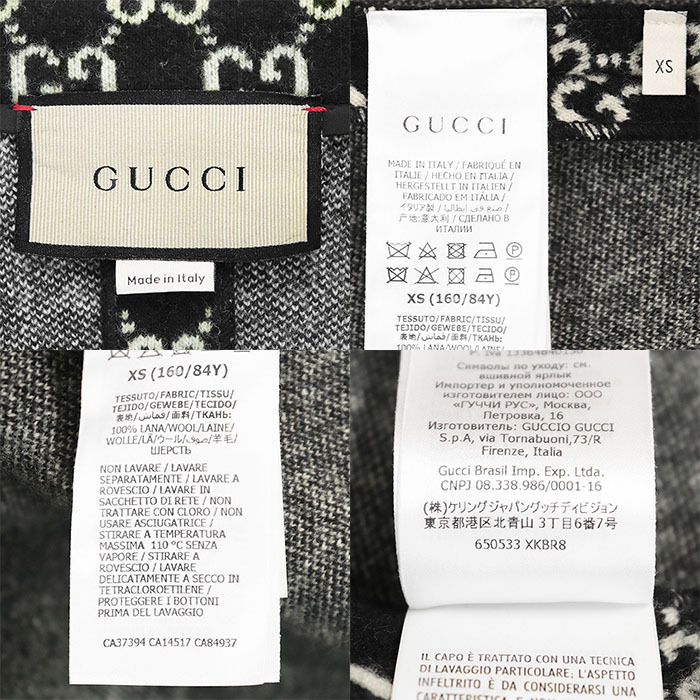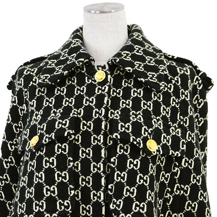 シリーズGUCCI グッチ ケープ ジャカード ウール100% 21AW GG ロゴ メタル アンカーボタン ポンチョ レディース XS 黒 生成