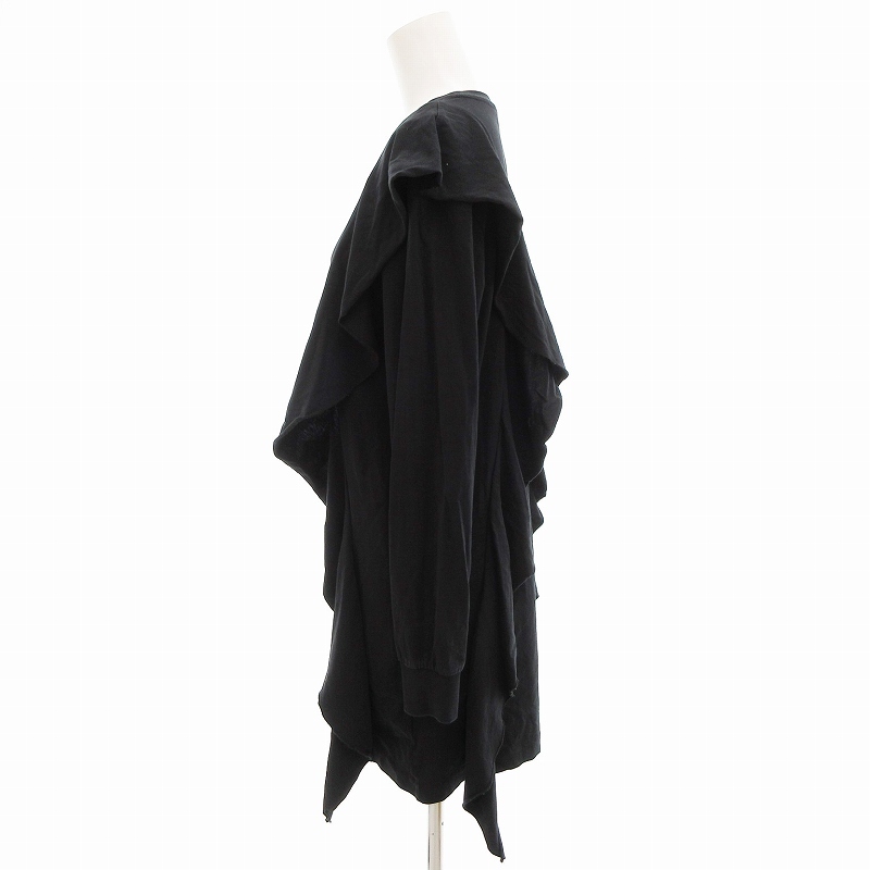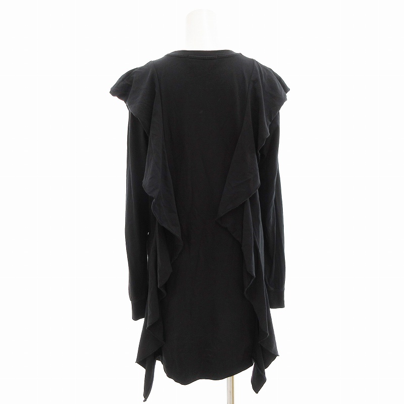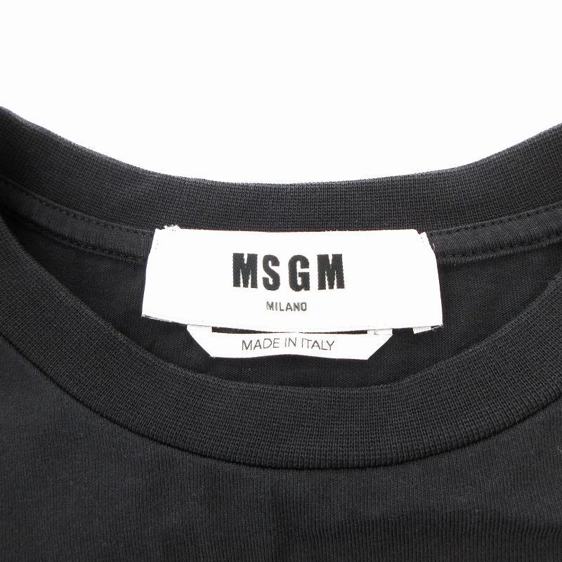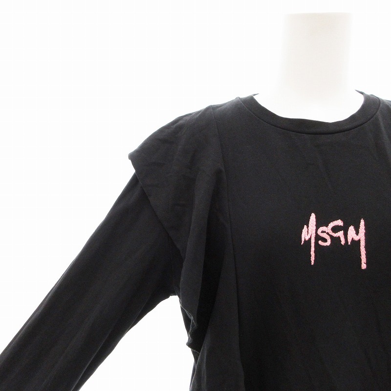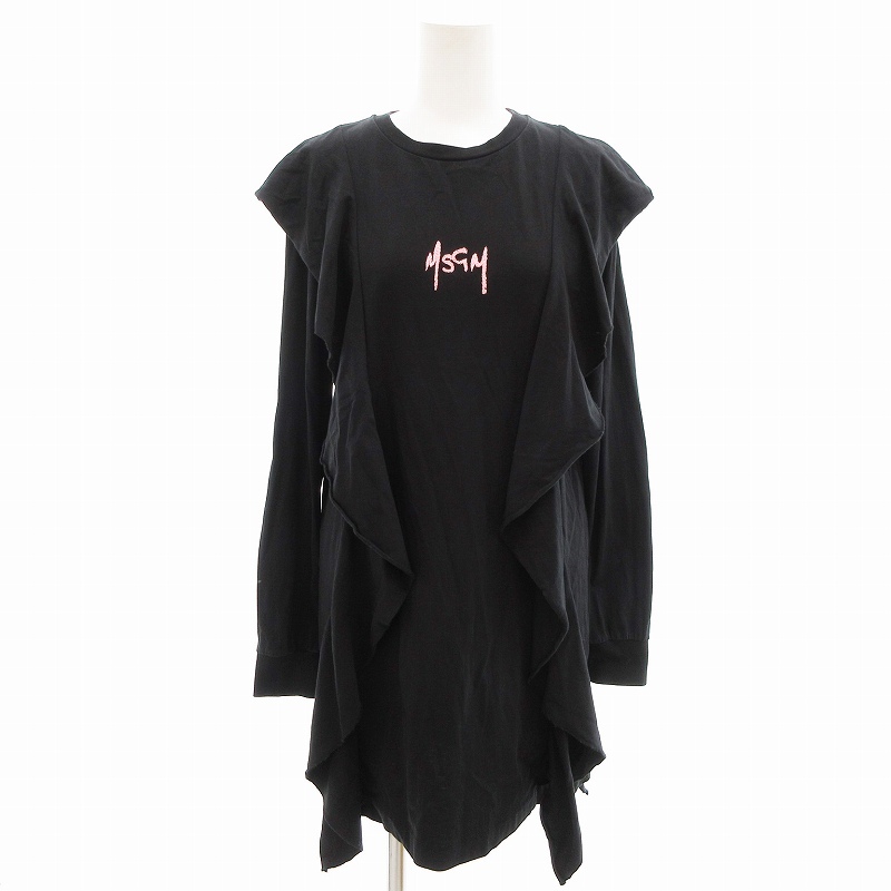 エムエスジーエム MSGM カットソーワンピース フリル ロゴ 刺繍 長袖 ミニ XS 黒 ブラック /AE ■GY41 レディース