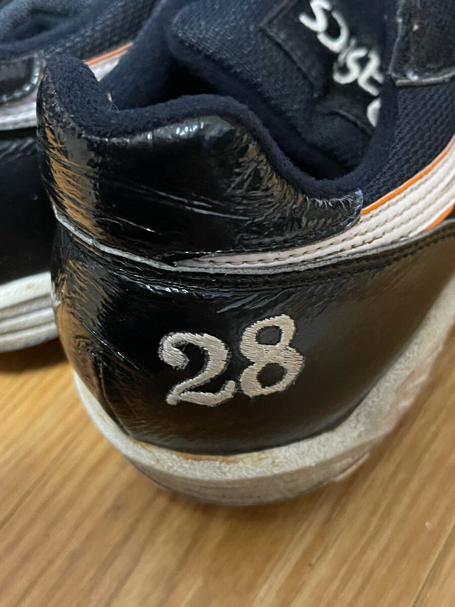 読売ジャイアンツやボストンレッドソックスで活躍した岡島秀樹投手の読売ジャイアンツ時代の実使用スパイクです。両スパイクに読売ジャイアンツ時代(1998年〜2005年の間)背番号の28が刺繍されております。スパイクのメーカーはアシックスです。プロ野球で74セーブ、メジャーでは6年で84セーブを上げました。何か気になる点がございましたらコメントをよろしくお願いいたします。