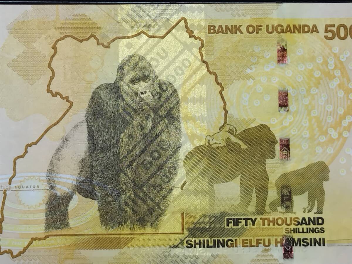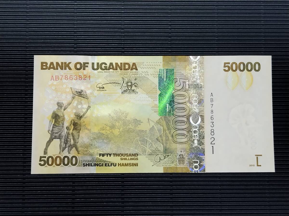 ウガンダ 5万(50000) Shillings札 コレクション向きのピン札 未使用~甘い未使用 2010年 初期発行版 ゴリラ p-54a #AB7863821