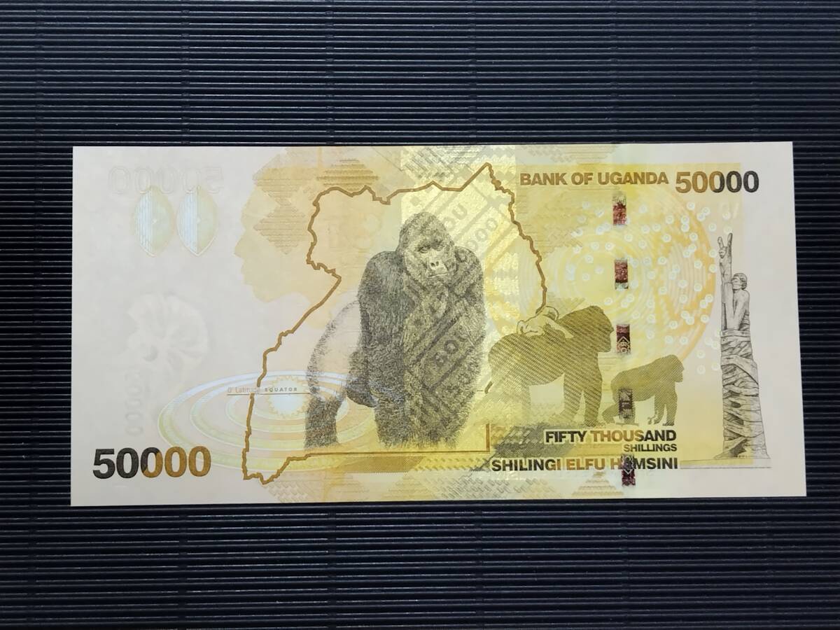 ウガンダ 5万(50000) Shillings札  コレクション向きのピン札  未使用~甘い未使用  2010年  初期発行版 ゴリラ p-54a #AB7863821