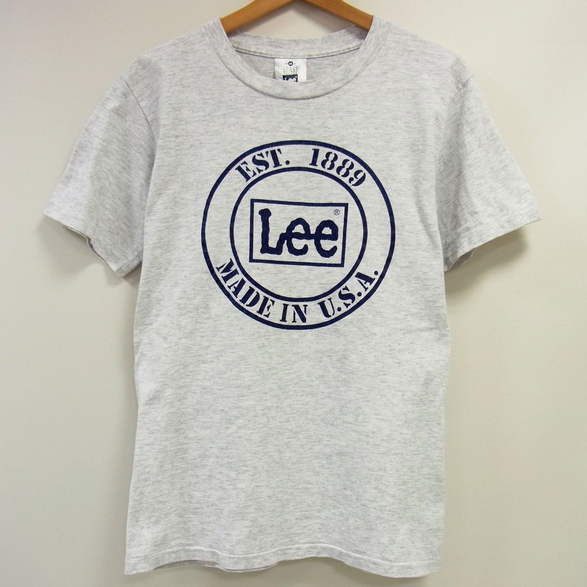 希少 90s ヴィンテージ USA製 Lee リー 霜降り クールネックTシャツ ロゴプリント シングルステッチ メンズ M
