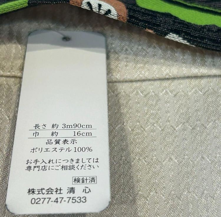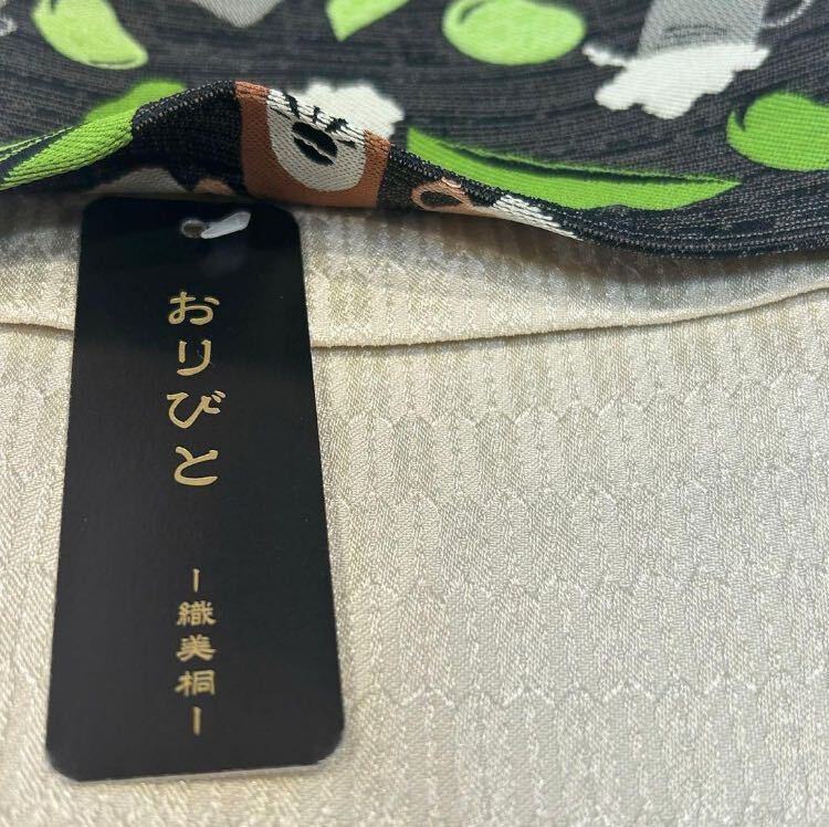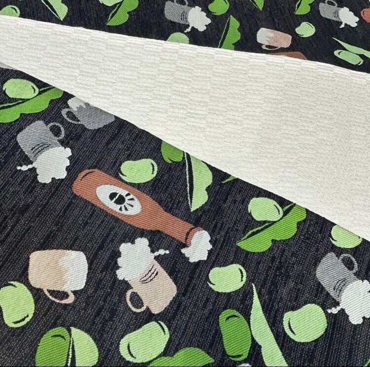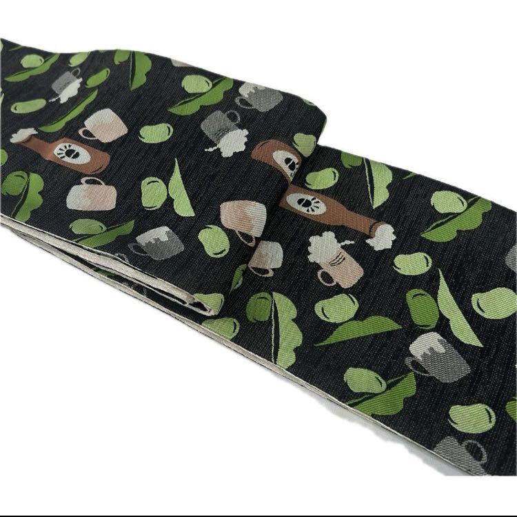 【新品未使用】おりびと半幅帯 ビール ジョッキ そら豆 個性的 可愛い お洒落 黒地