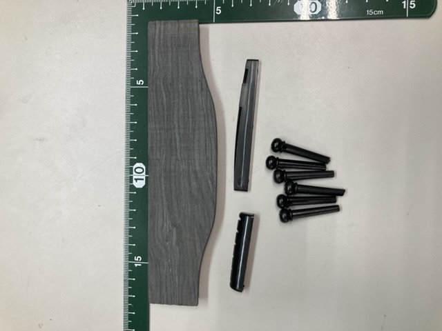 素地は青みが掛かったローズウッド製アコギ用ブリッジです。
