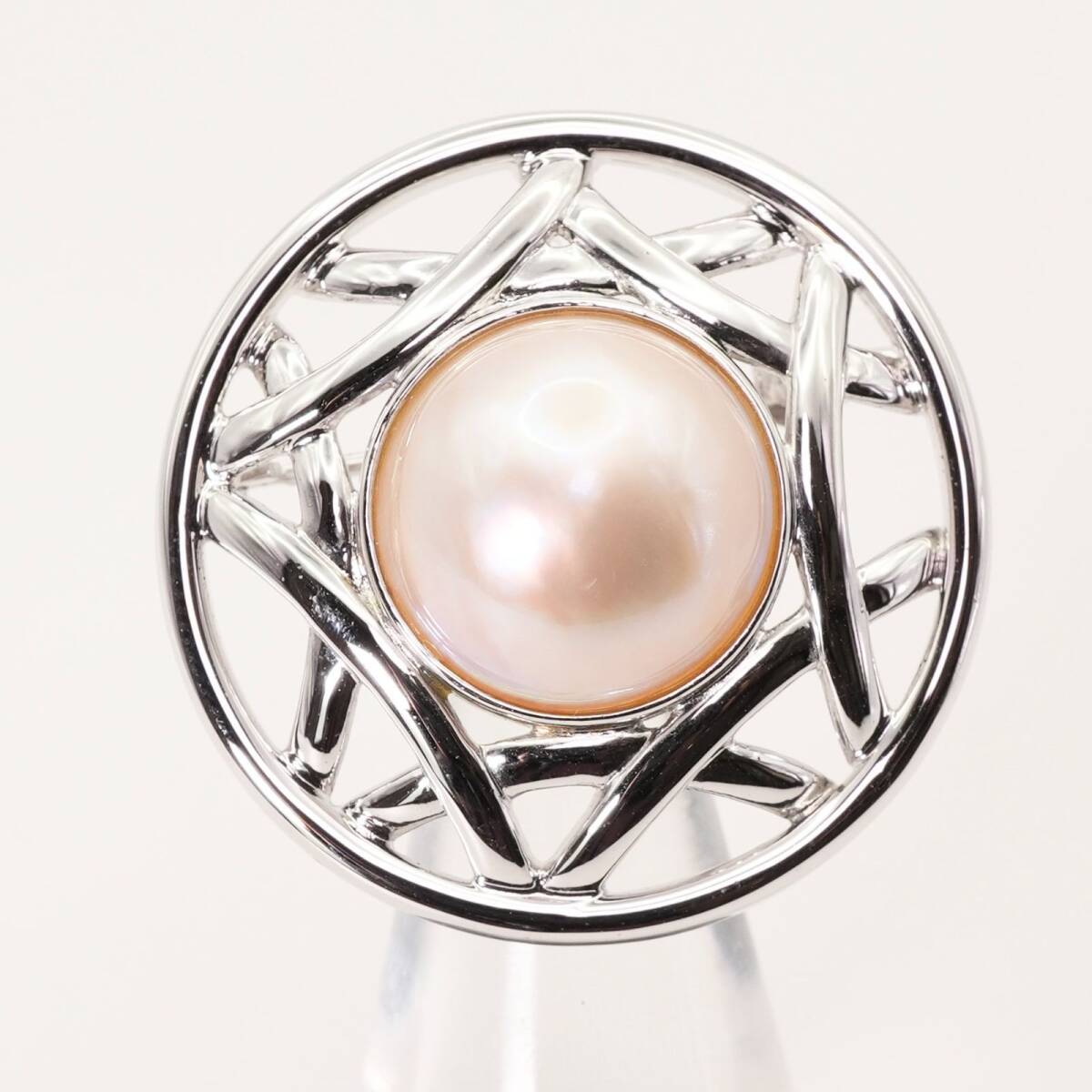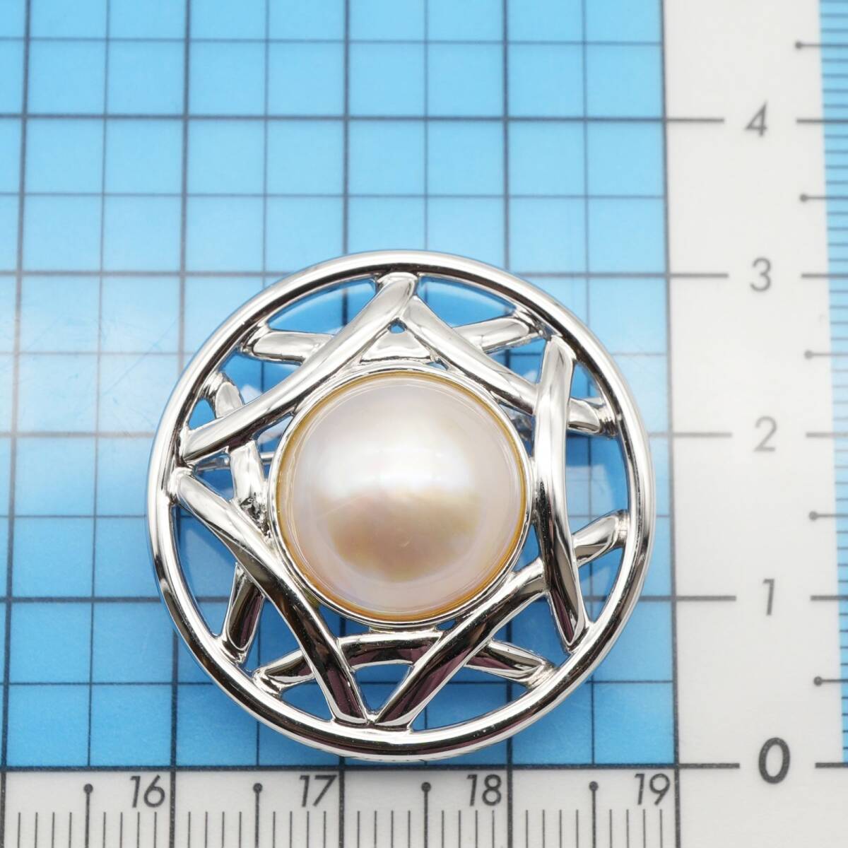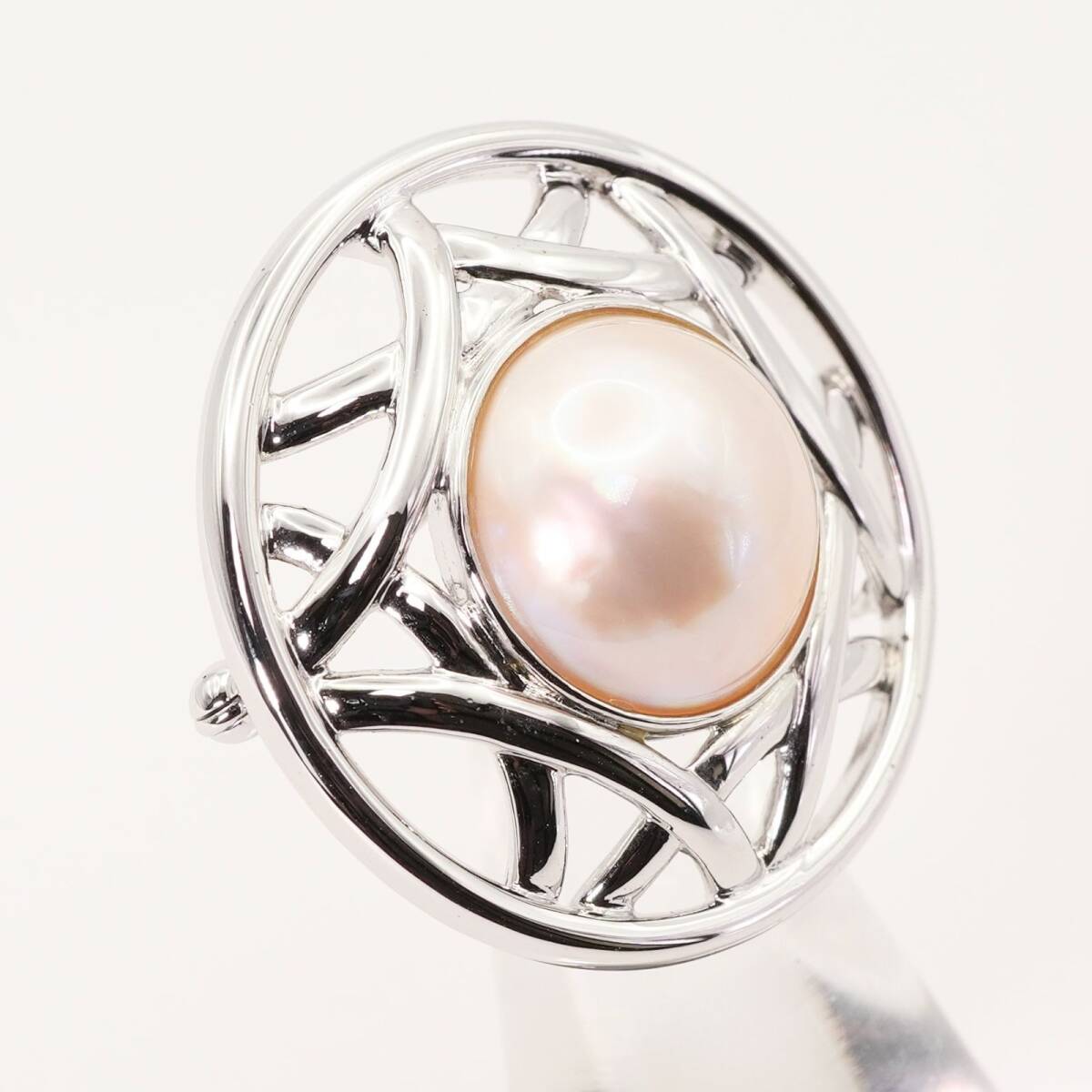 美品 田崎真珠 マベパール ラウンド ブローチ 真珠 シルバー/25-148S