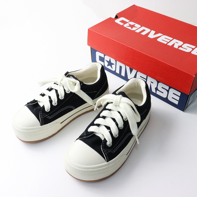 美品 コンバース CONVERSE 1SD830 ALL STAR BOARDERSTAR OX スニーカー 24.5cm/ブラック キャンバス 厚底【2400014487572】