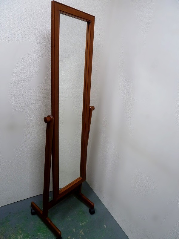 (☆BM)木製フレーム キャスター付き 4輪 大型 全身鏡 ミラー 置き型 高さ153㎝ シンプル シック スタンドミラー