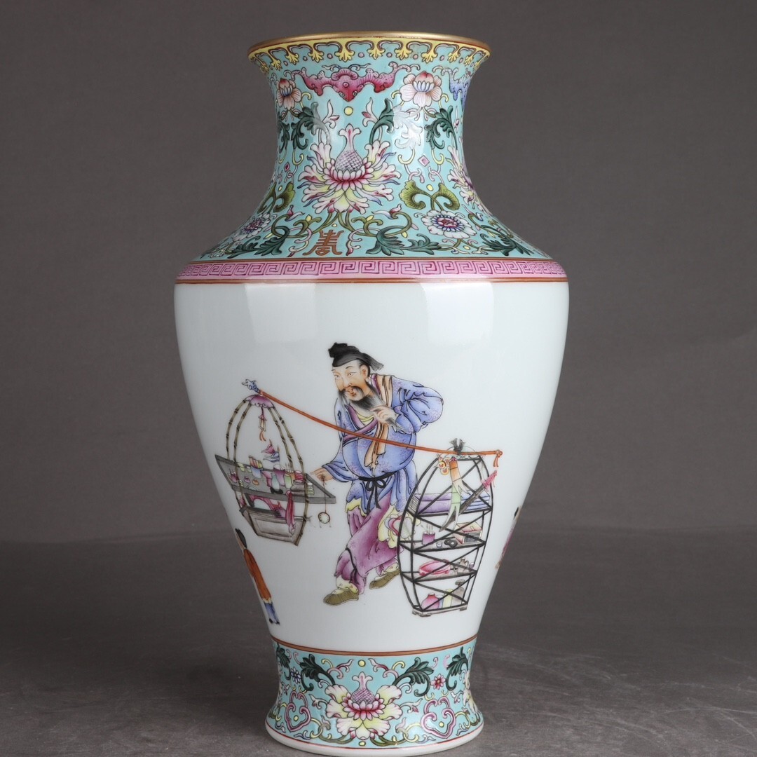 清代 大清乾隆年製 陶磁器 粉彩人物故事 賞瓶【仁】染付 置物擺件 古賞物 古美術 中国古玩 蔵出