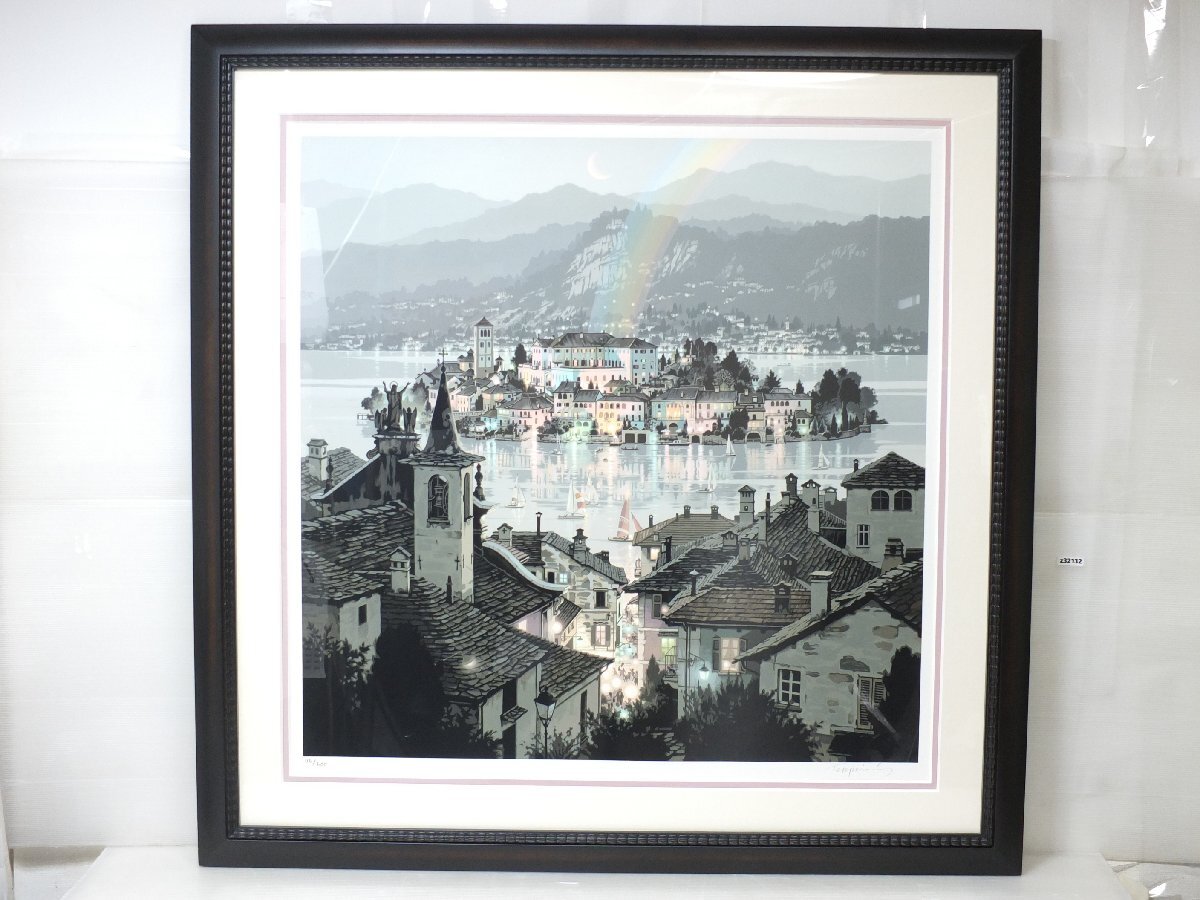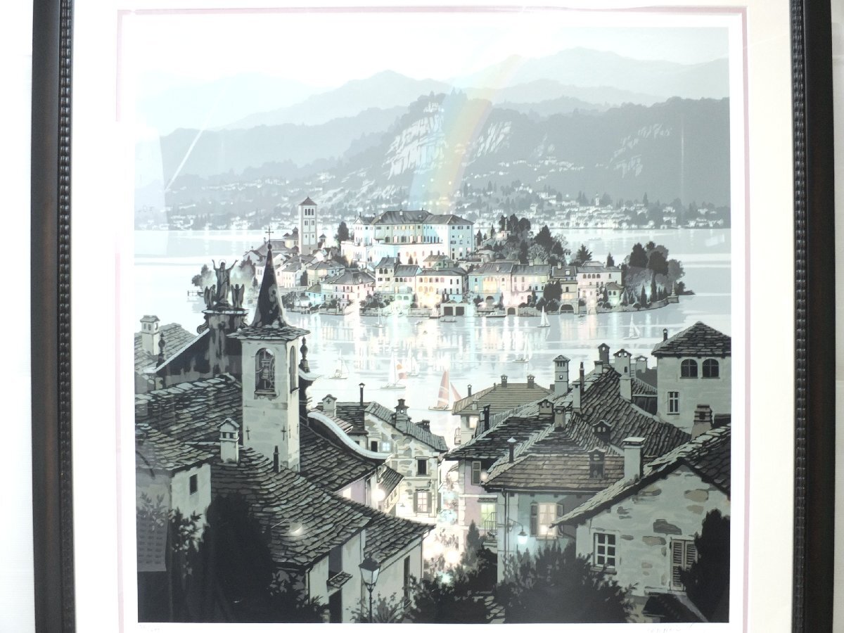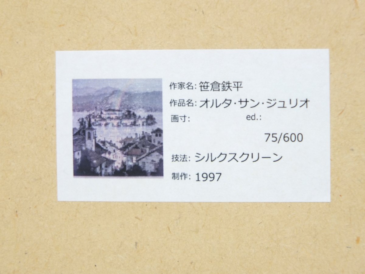 【z32132】直接取引歓迎 埼玉発着払い 真作 美品 笹倉鉄平 オルタ サン ジュリオ 75/600 シルクスクリーン 1997 風景画 額装 箱付き