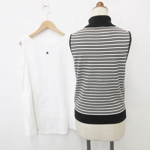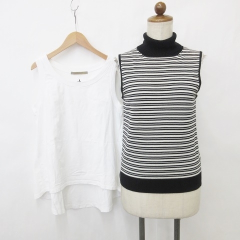23区 オンワード樫山 ANNA KERRY アンナケリー ニット カットソー 2枚セット ノースリーブ ボーダー タートルネック ブラック ホワイト 38