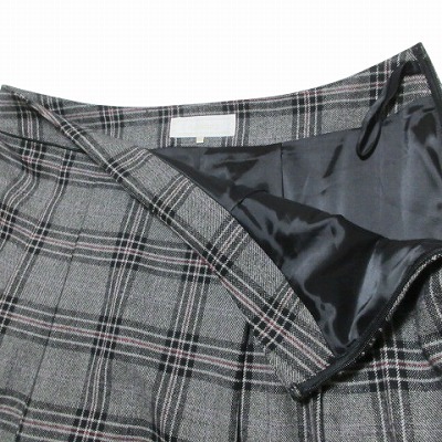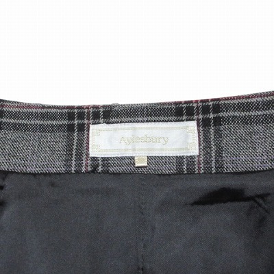 アリスバーリー Aylesbury 美品 近年 チェック スカート ひざ丈 タックフレア 11 L相当 グレー ■GY09 X レディース