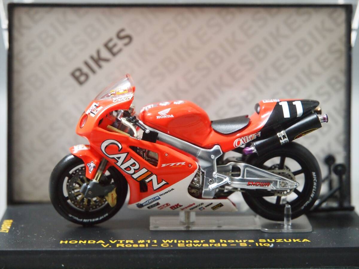 ixoより、1/24サイズのホンダ VTR 2001年 鈴鹿8時間耐久優勝 #11 V.ロッシ/C.エドワーズ/鎌田学 Team CABIN HONDA です。