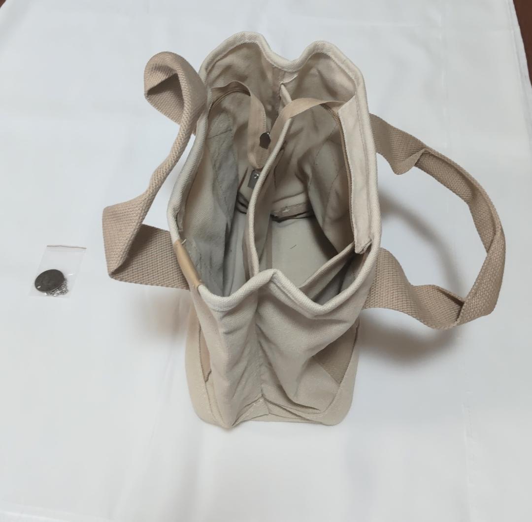 素材はコットンキャンバスで丈夫な素材、底部も自立できるしっかりタイプです。