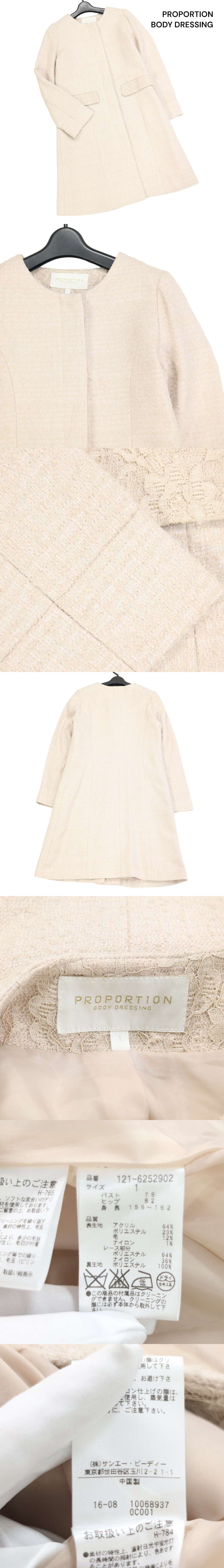 PROPORTION BODY DRESSING プロポーションボディドレッシング レース切替♪ ツイード ノーカラー コート Sz.1 レディース