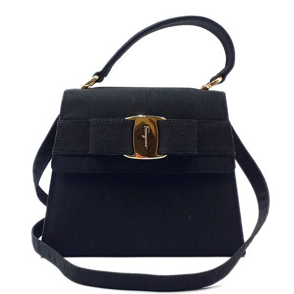 ◆美品◆ サルヴァトーレフェラガモ Salvatore Ferragamo ハンドバッグ ショルダーバッグ 鞄 2WAY ヴァラ G金具 黒系 01-25061704-c