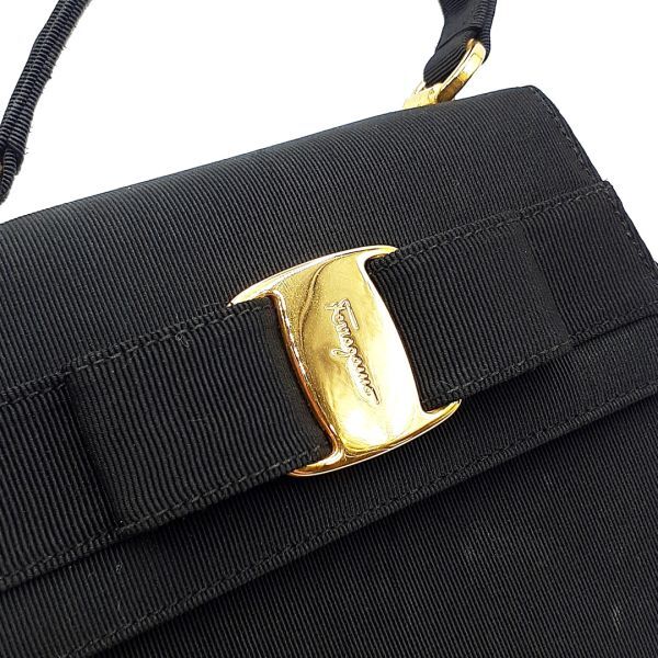 ◆美品◆ サルヴァトーレフェラガモ Salvatore Ferragamo ハンドバッグ ショルダーバッグ 鞄 2WAY ヴァラ ゴールド金具 G金具 黒 ブラック系 レディース