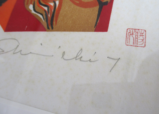 額装 木版画 高橋信一 のろま ガラス 紙箱 シミあり 札幌市