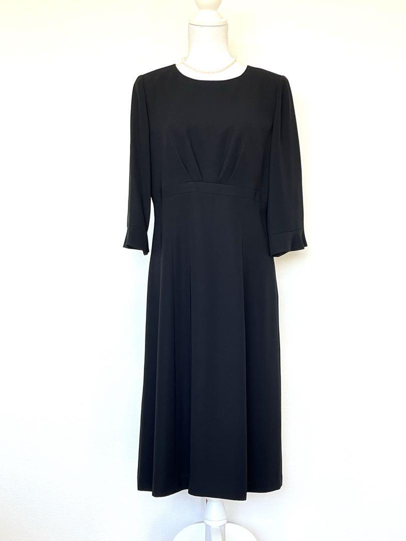 ワンピースは後センターにファスナーがありお袖は肘が隠れる長さです。