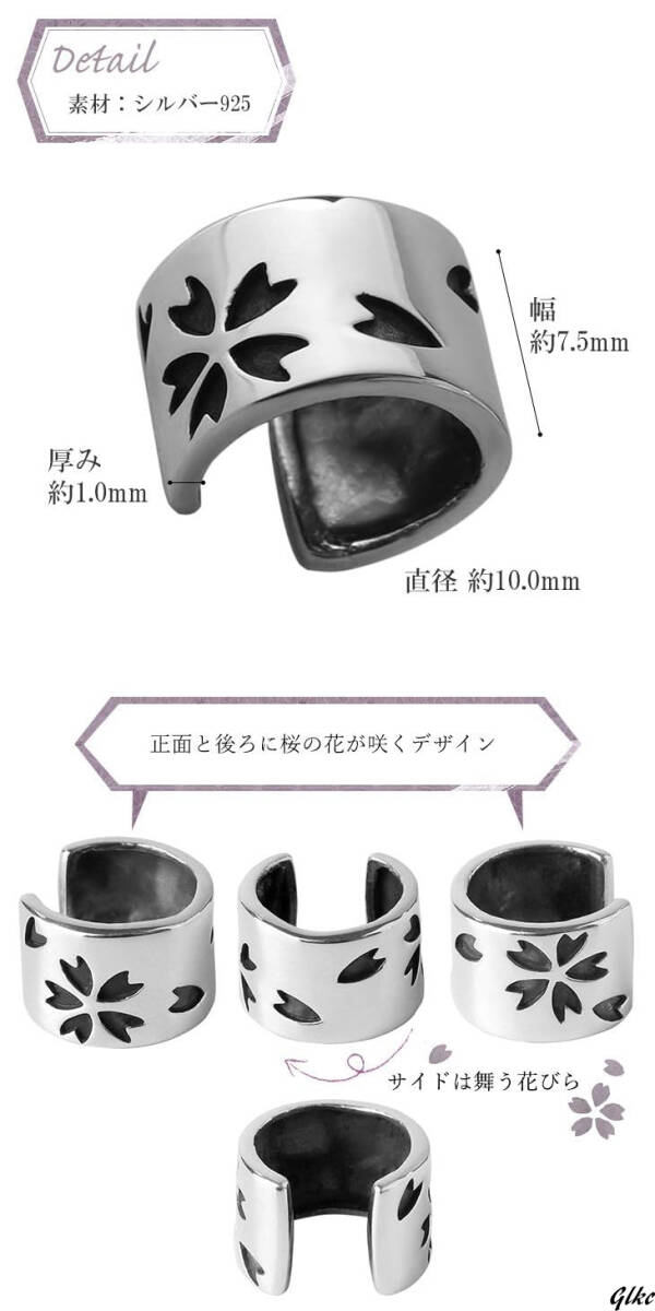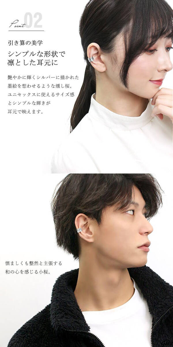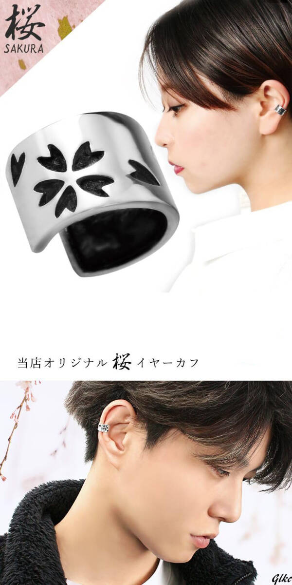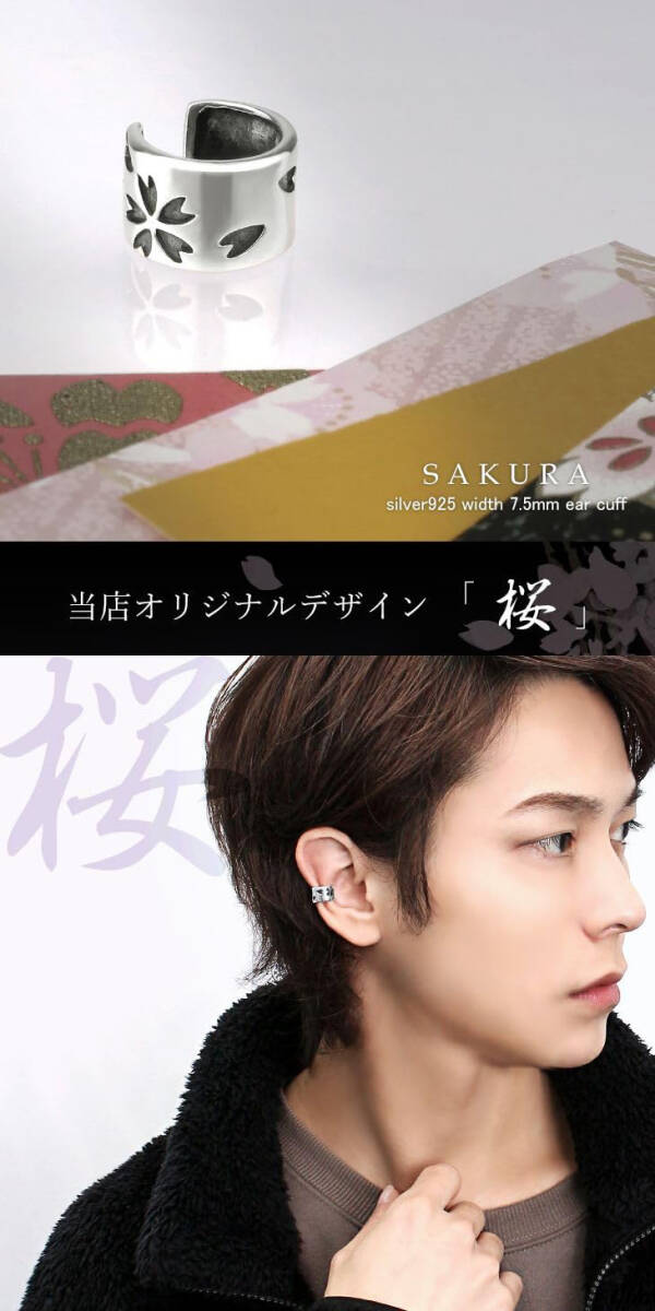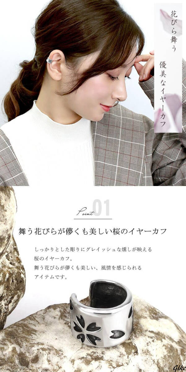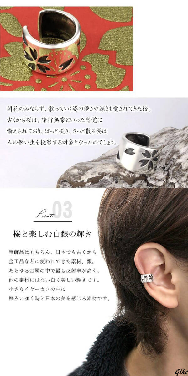 【高品位素材シルバー925を使用。輝きと耐久性を兼備】 イヤーカフ 桜 シルバー925 ノンホール 春アクセサリー ユニセックス ギフト